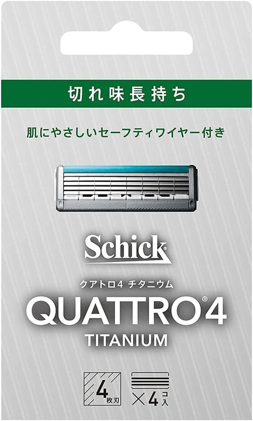 Schick(シック) クアトロ4チタニウム 4枚刃 替刃(4コ入) セーフティワイヤー付 ドイツ製 シルバー 髭剃り カミソリ