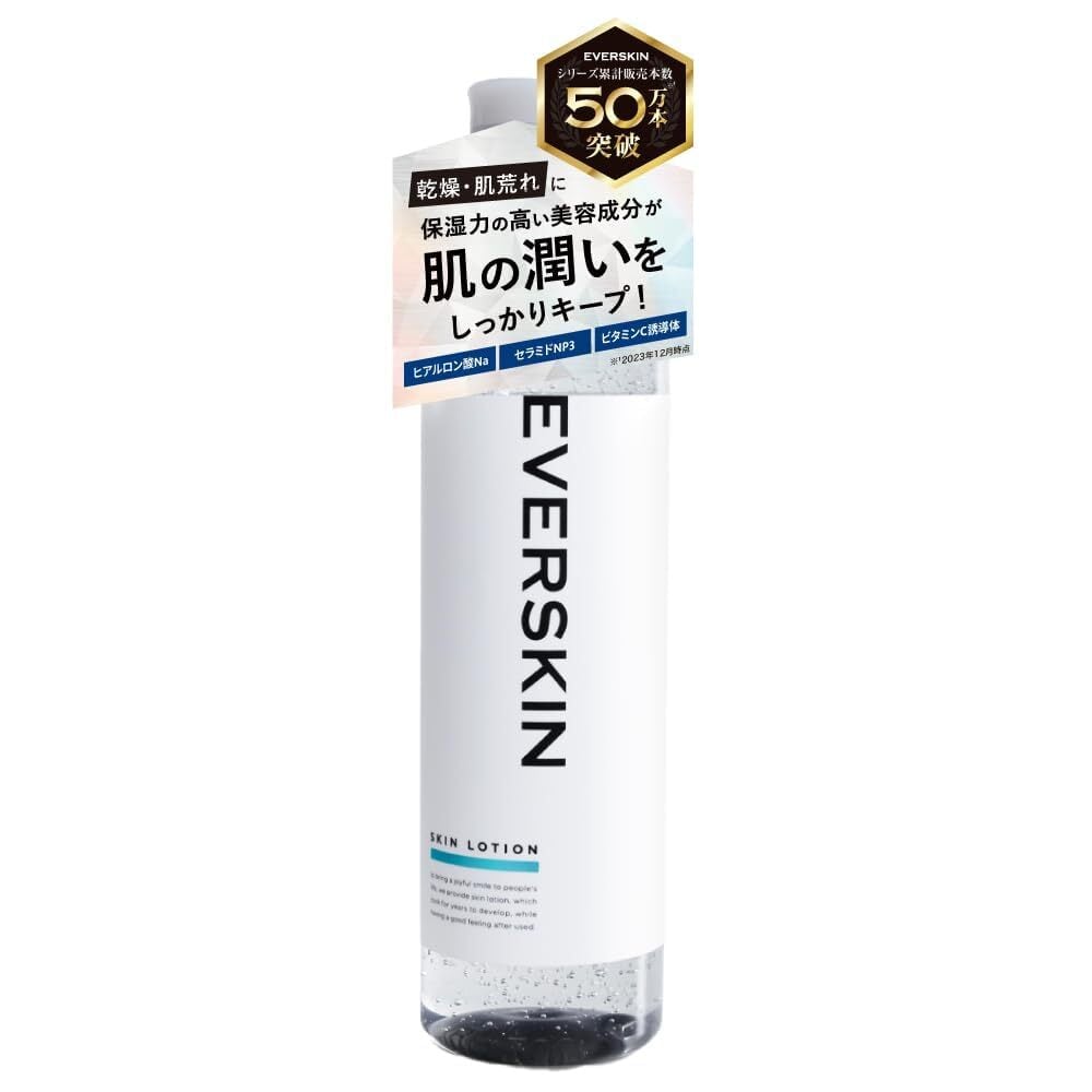 【厳選された保湿成分を贅沢配合】EVERSKIN オールインワンスキンケアローションは保湿力の高い3つの美容成分を配合。「サクラン」「セラミド」「ヒアルロン酸」に加え、清潔肌には欠かせない、「リンゴ幹細胞エキス」「ナールスゲン」「ビタミンC誘導体」を配合しております。
