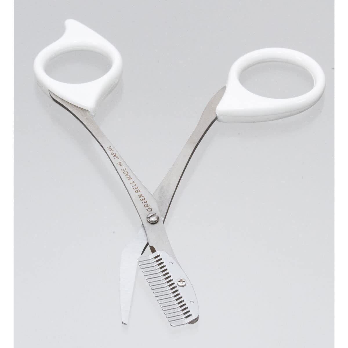 グリーンベル ステンレス製 クシ付き眉はさみ(ホワイト)
