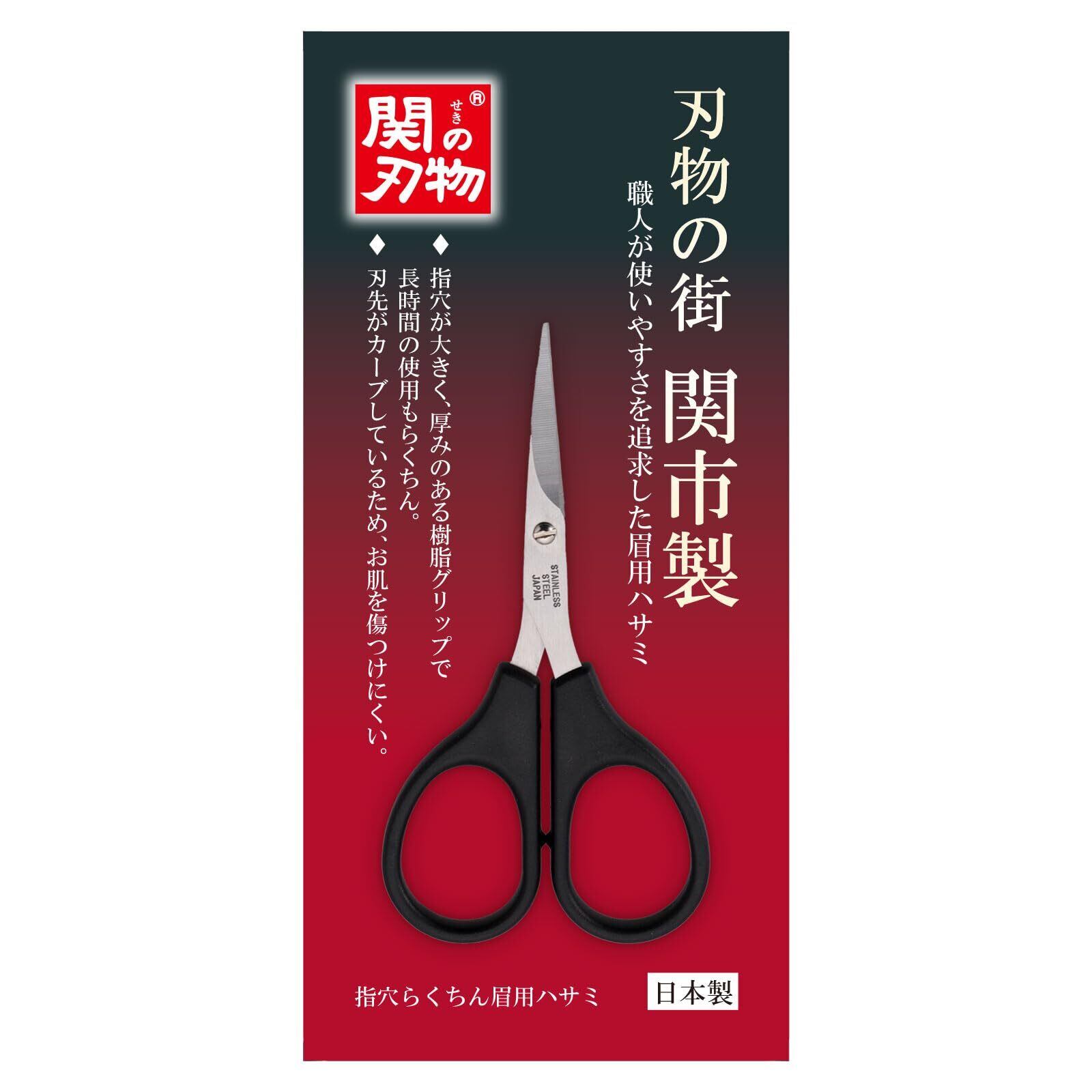 コモライフ 指穴らくちん 眉用ハサミ 眉 はさみ 眉毛 カッター 関市製 薄刃 刃先カーブ ステンレス製 日本製