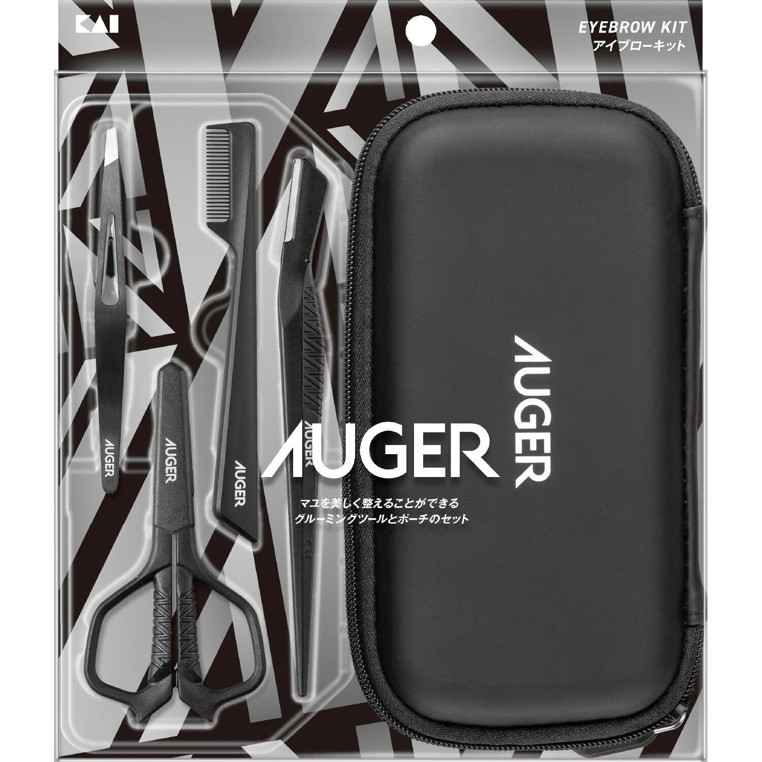 AUGER アイブローキット ポーチ付き 眉毛 マユ オシャレハサミ 毛抜き シェービングレザー アイブローコーム HC2314