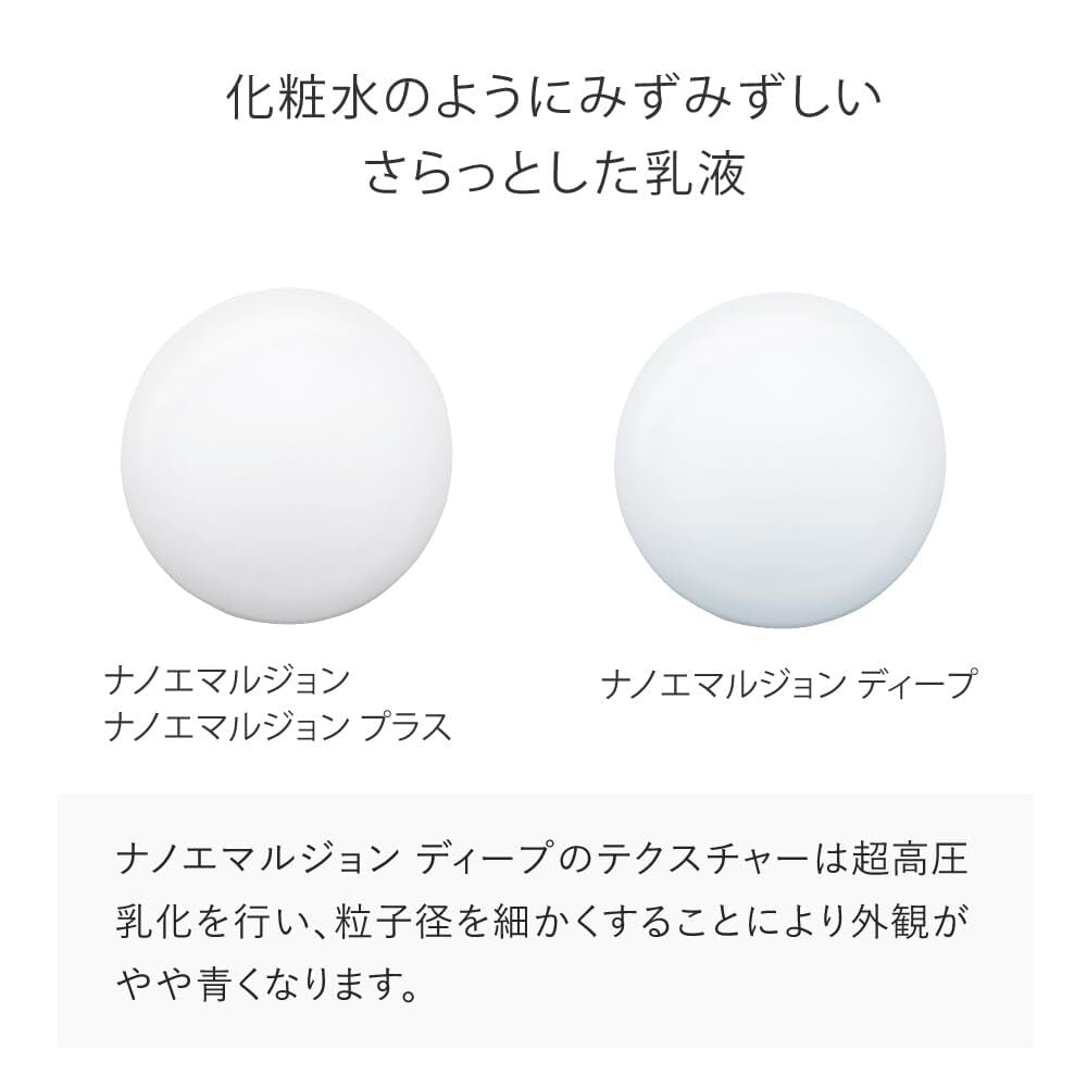 【抜群の肌なじみ】超高圧乳化で粒子径を細かくしたことによって、化粧水のようにみずみずしく、さらっとしたテクスチャーに。また、全体を多重膜構造のナノカプセルにしたことで、さらに浸透力と保湿力が向上。