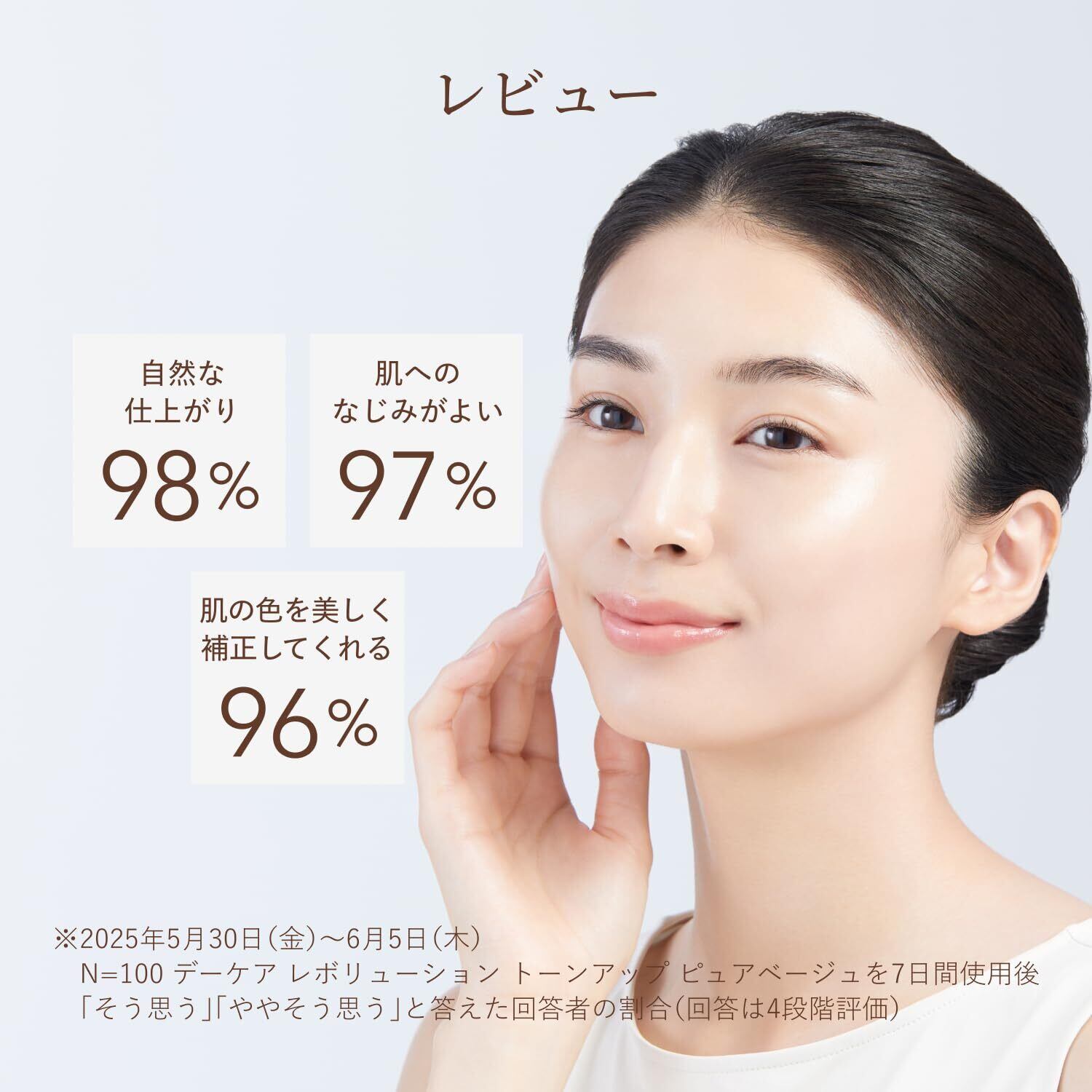 「販売名:エリクシール デーケアレボリューション トーンアップ BE + ca」トーンアップとハリ。乳液・化粧下地・UVカットに、トーンアップ効果*まで。 肌にすばやくなじみ、みずみずしい使い心地。乾燥による小ジワを目立たなくします**。 洗顔料・石けんで落とせます。 〇ピュアベージュ 大人の肌のシミ・色ムラや影を瞬時に補正し、明るくハリに満ちた印象へ 〇ベビーピンク 大人の肌のくすみや影を瞬時に補正し、明るくハリに満ちた印象へ *メイク効果による **効能評価試験済み