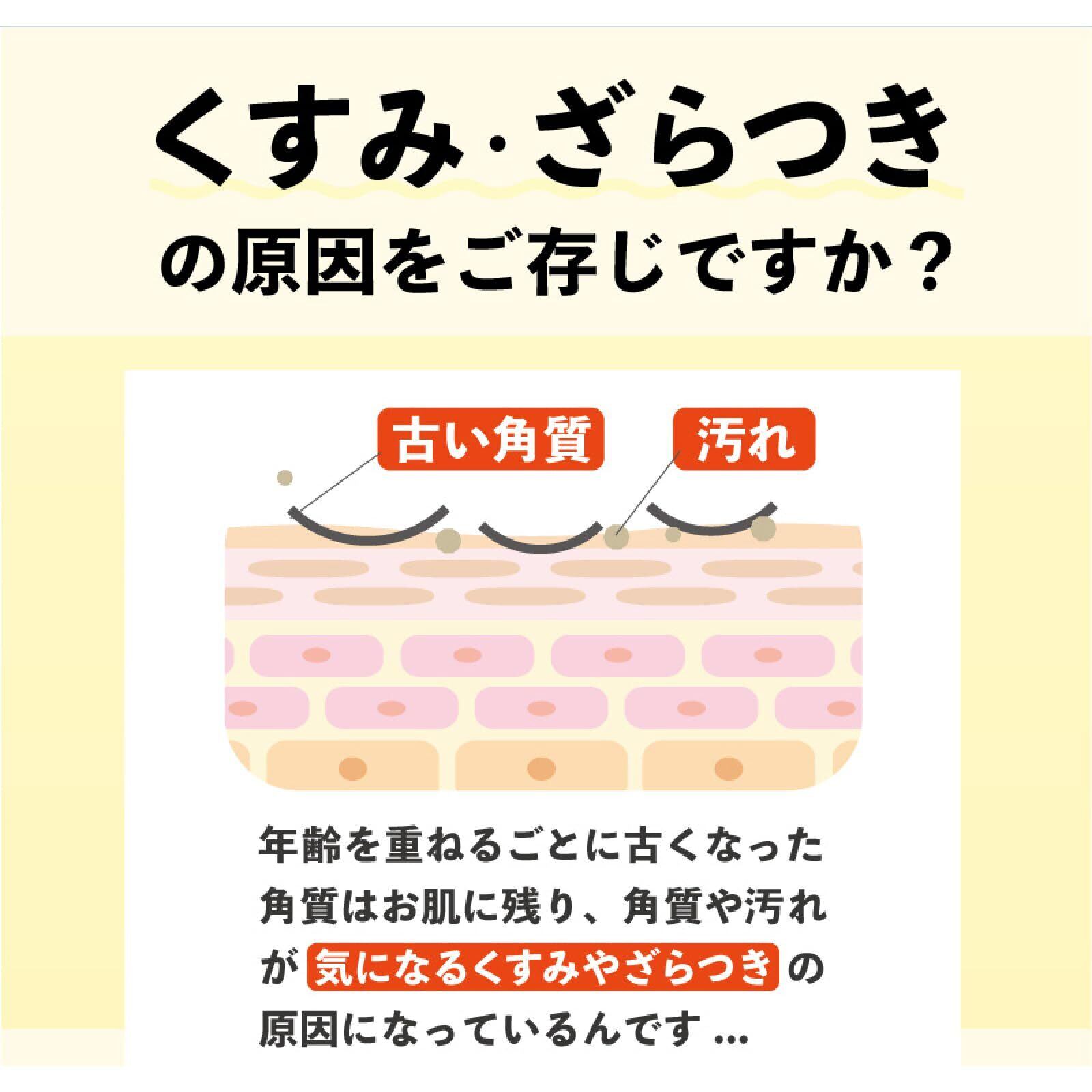 1) 選べる香り4種類! 【レモンの香り】自然の恵み「瀬戸内産レモン(レモン果実水)」、「小豆島産オリーブ(オリーブ果実油)」配合。※保湿成分 【柚子の香り】「ユズ果実エキス」配合※保湿成分 【みかんの香り】「国産みかん(ウンシュウミカン果皮エキス)」配合※保湿成分 【桃の香り】山梨県産モモ葉エキス、モモセラミド水、モモ種子エキス、モモ果実水、モモ果汁 2)プラセンタ、アルブチンなど白肌成分5種、ヒアルロン酸、コラーゲンなど保湿成分6種配合。ピーリング後の肌を優しくケア。 3)たっぷり使える大容量290mlのポンプタイプ。 4) 顔・全身OK!お風呂場での使用もOK!※水気を拭き取ってからご使用ください。 5) 湯船に浸からないシャワー派の人は垢がたまっている可能性大なので、特におすすめです。 6)こだわりの香りで、リフレッシュしながらピーリングケアができます。 【使用方法】 水分をよく拭き取った清潔なお肌に適量(3~4プッシュ)をうすくなじませ、くるくると優しくマッサージしてください。 ジェルが古い角質と絡み、カスがポロポロとしてきたら、すすぎ残しがないよう十分に洗い流してください。 強くこすりすぎると肌トラブルの原因になりますので、ご注意ください。週2~3回がご使用の目安です。