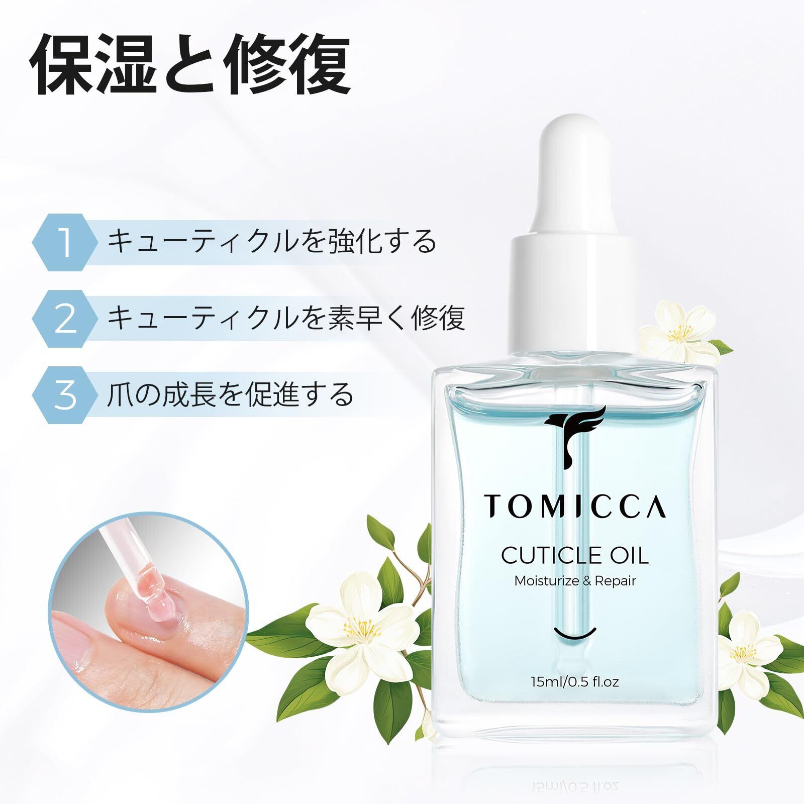 TOMICCA ネイルオイル オイルリムーバー 15ML ネイルキューティクルオイルキューティクルの保湿、栄養、修復に最適な植物精油 保湿成分配合 乾燥した爪のケアと修復に爪栄養オイル (ジャスミン)