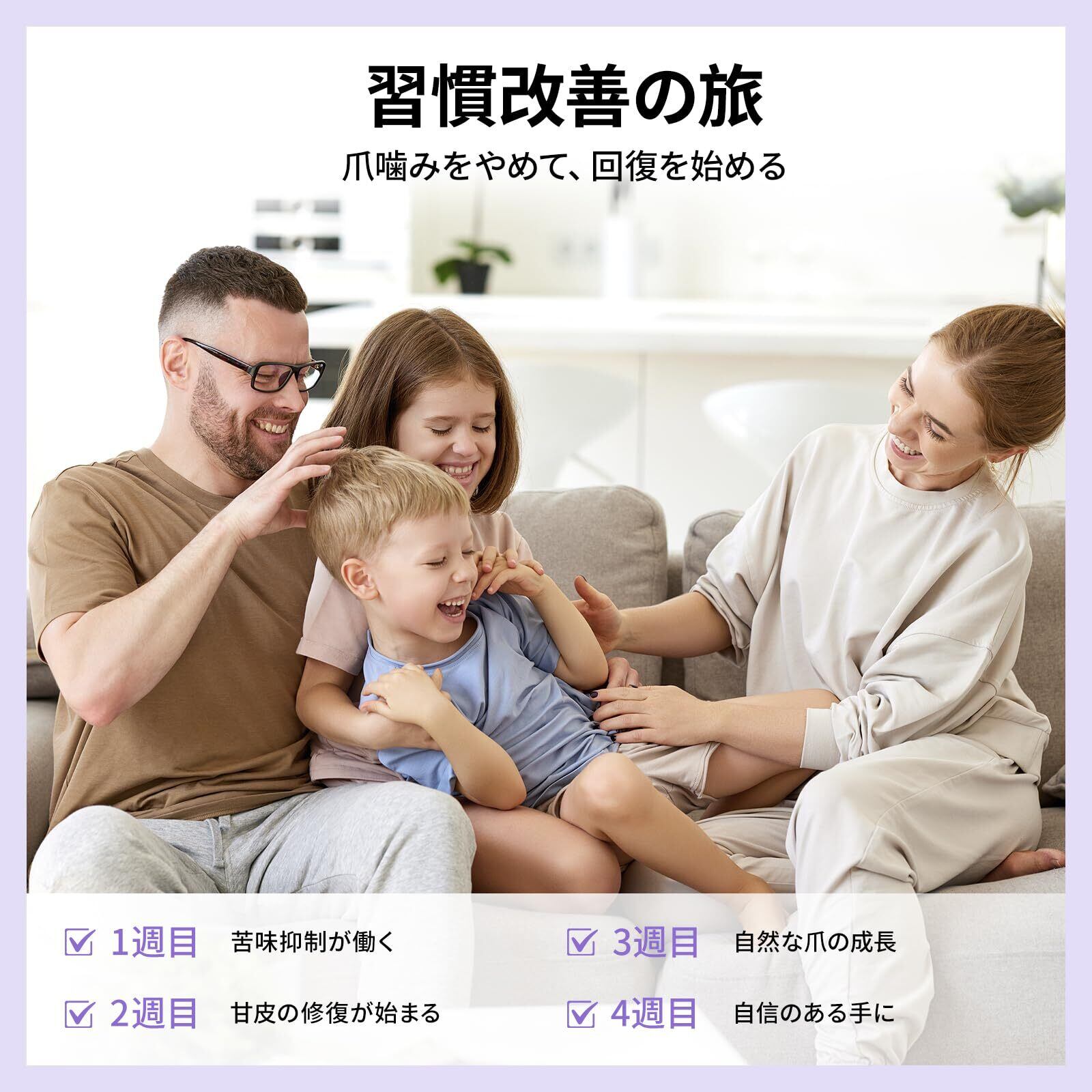 家庭でできる習慣改善サポート - 爪の習慣を改善したい大人の方に最適です。自宅で手軽に塗布でき、毎日の習慣改善をサポートします。使用後は水で簡単に洗い流せるので、机やスマートフォンなど、手に触れるものにも安心してお使いいただけます。