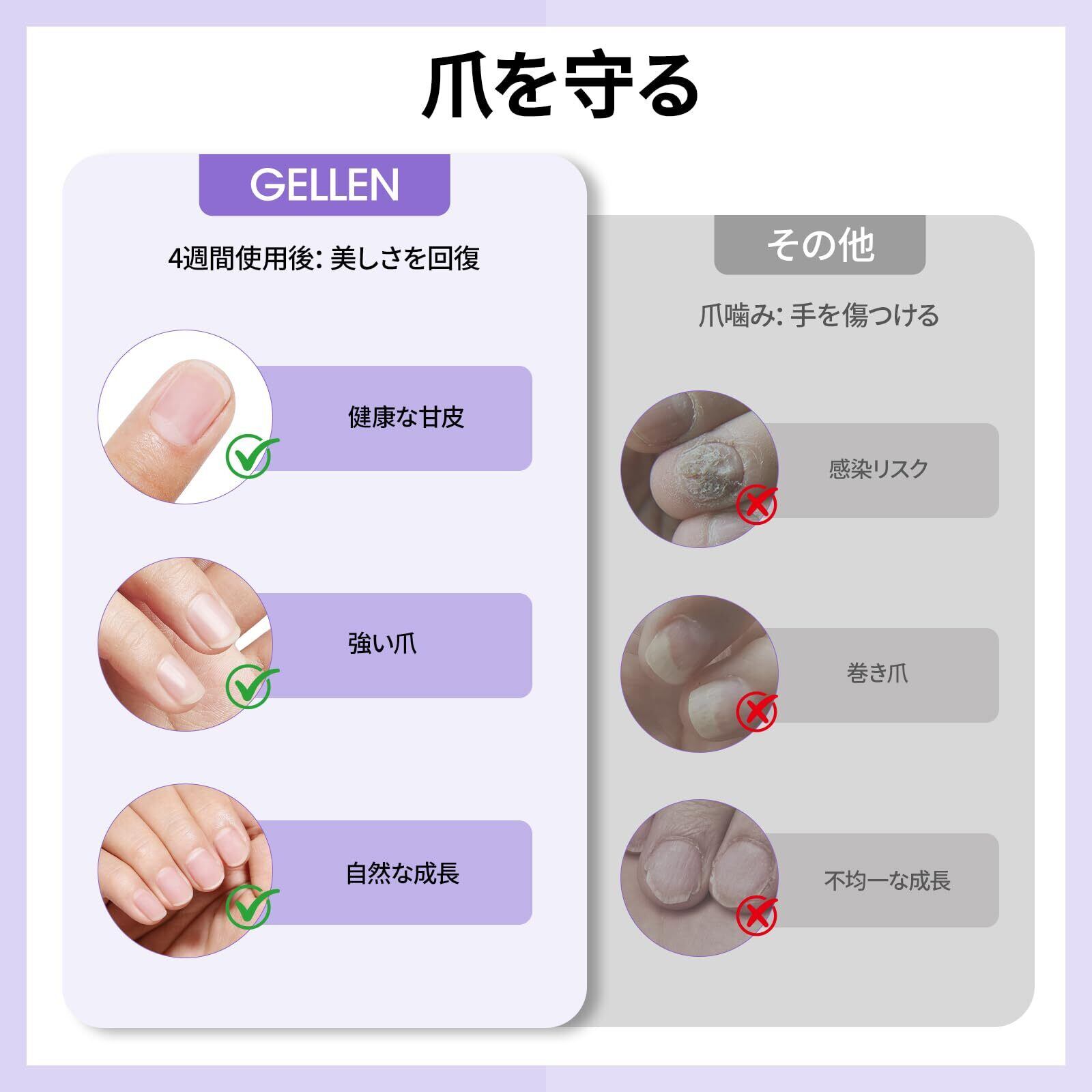 苦味で習慣改善 - Gellen 苦い爪噛み防止液は、爪噛みや指しゃぶりをやめたい方のために開発されたマニキュアタイプの習慣改善用液です。速乾仕様で手早く塗布でき、苦味成分が自然に悪習慣を抑制します。
