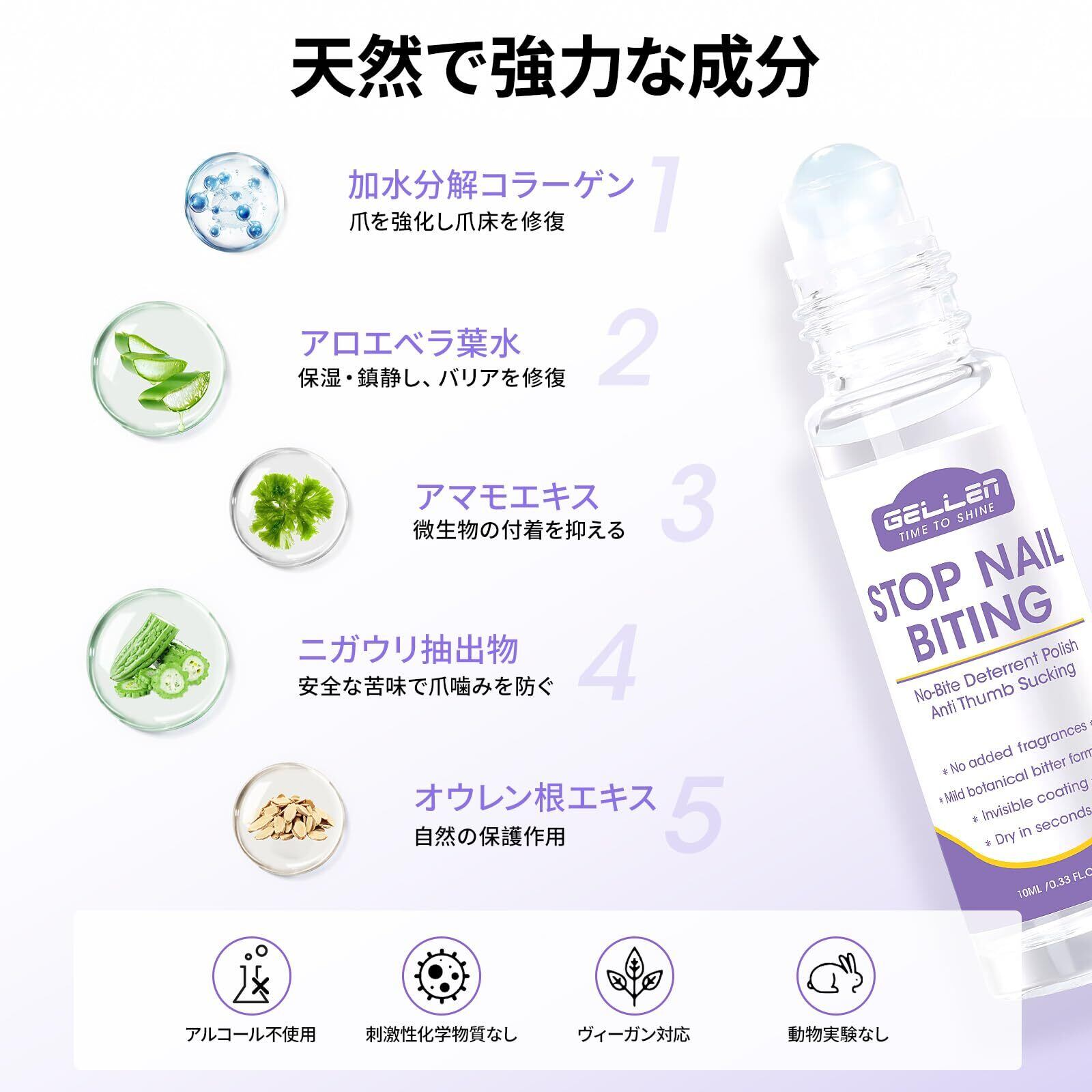 Gellen 苦い爪噛み防止液 10ml 習慣改善用 マニキュアタイプ 速乾 吸引防止・指しゃぶり防止・植物由来成分配合 ボールベアリング設計