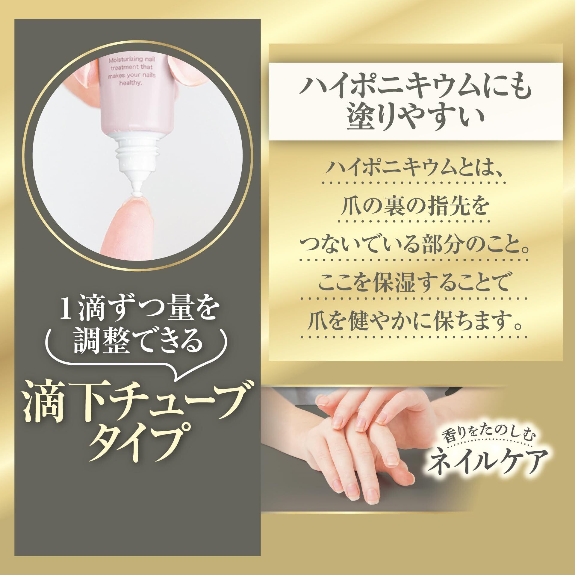 高保湿なオイルが爪・甘皮にうるおい・ツヤを与え、乾燥を防ぎます。べたつきにくいサラッとしたテクスチャー。