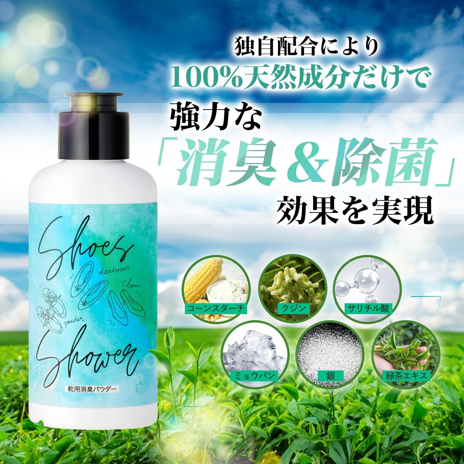 シューズシャワー 靴 消臭 ニオイ 対策 パウダー【悪臭98%カット】天然成分100% (肌に優しい 無添加 消臭パウダー) シューズ 足の臭い消し 対策 ケア [無香料] 大容量 (58g×1個)