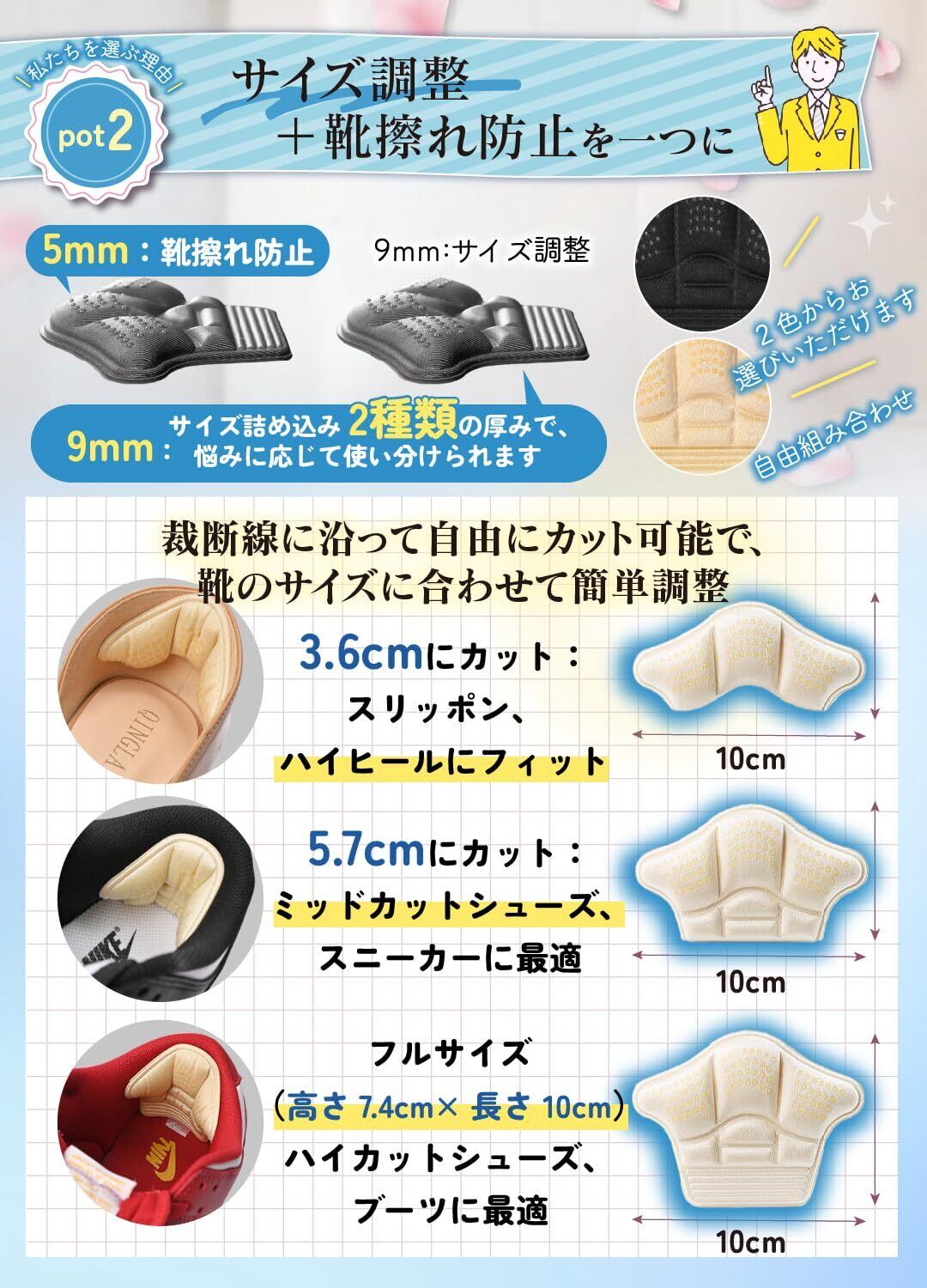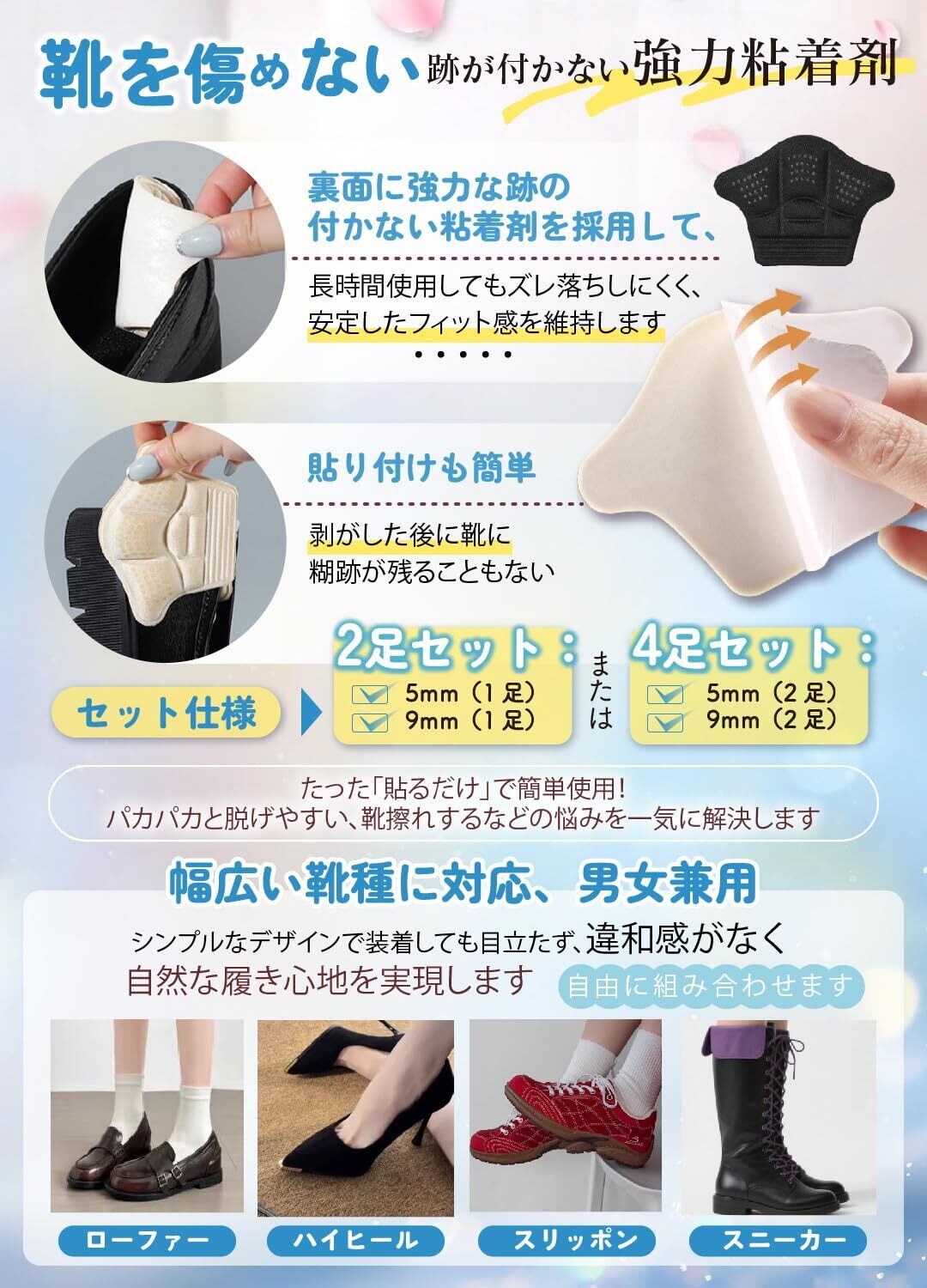 【2022最新】かかとパッド 靴擦れ防止 靴かかとパカパカ防止 滑り止め【靴かかとパッド 自由にカット可能】サイズ調整 靴脱げ防止 痛み対策 剝れにくく強い粘着力 滑り止め加工が施された柔らかい素材 靴ズレ防止テープ 粘着シール付き 高反発クッション素材 5mm+9mmセット仕様