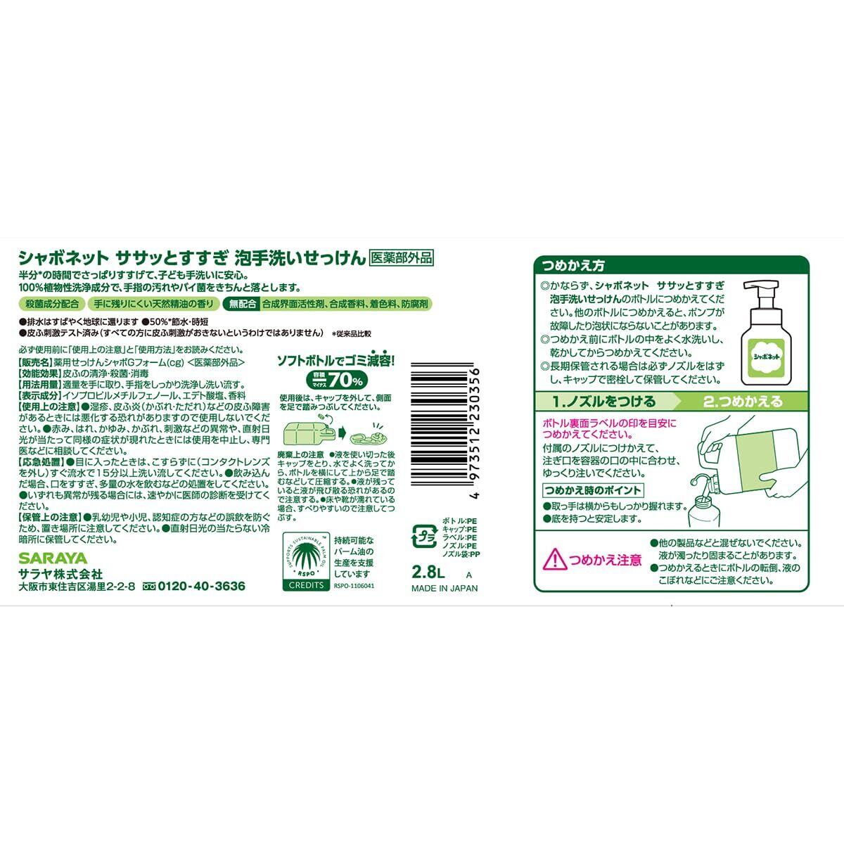 サラヤ シャボネットササッとすすぎ 手洗いせっけん泡タイプ 2.8L【 限定】