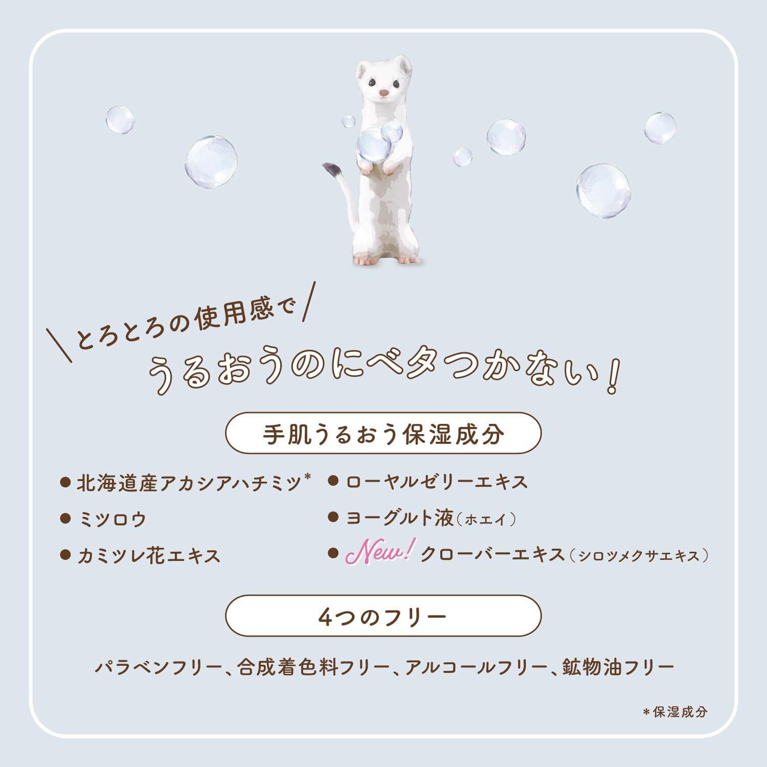 とろとろの使用感がありながら、ベタつきを感じさせない軽やかなジェルクリーム状のハンドクリーム。蜂蜜を配合したクリームが、やさしい潤いベールとなって乾燥から守ります。