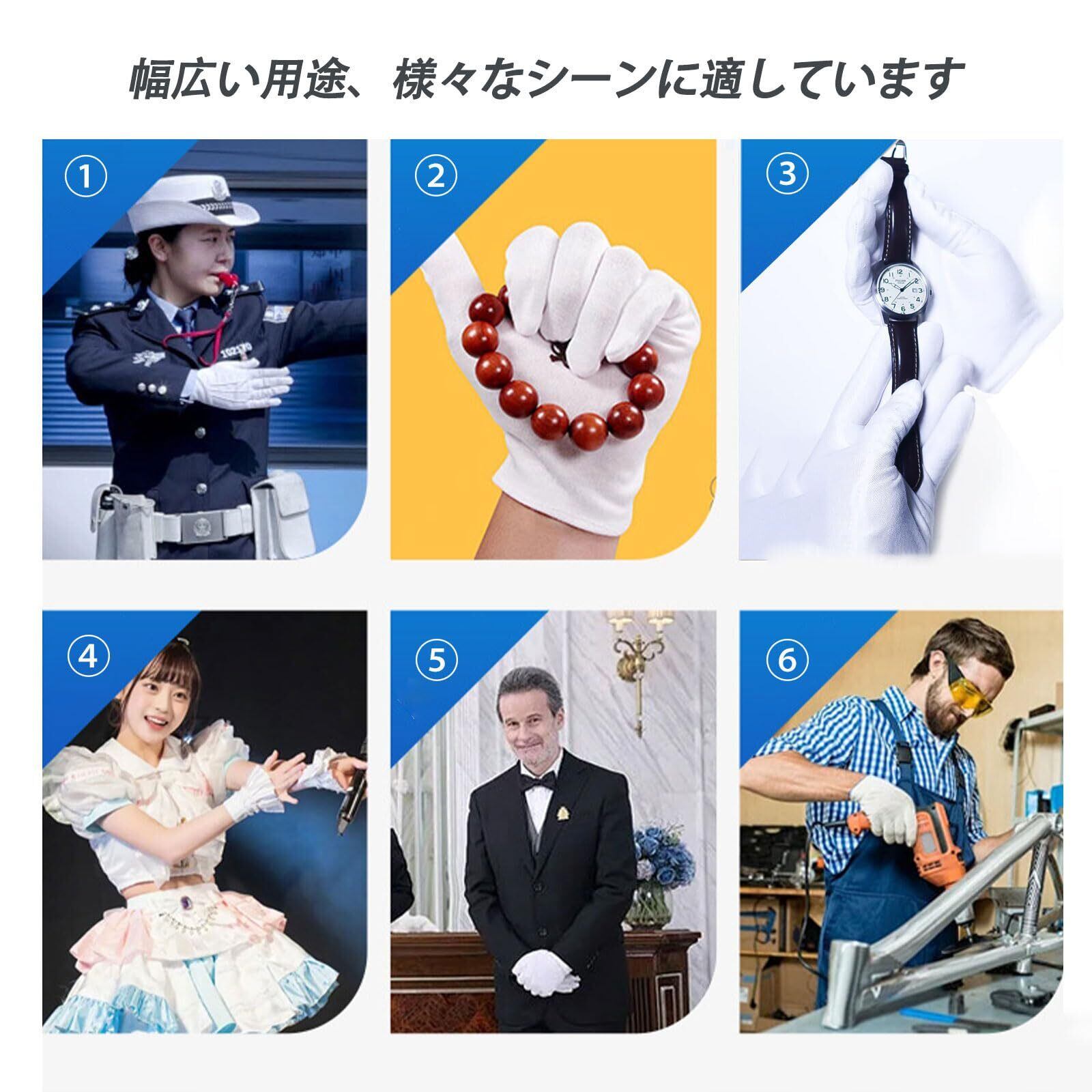 多用途 - この手袋は、コスチューム、パーティー、コスチューム、サービス、アート、宝石やコインの検査など、さまざまな作業状況に適しています。アーカイブ、写真、アルバムなど、フィルムを扱う必要がある場合は、このコットン手袋を着用してください。