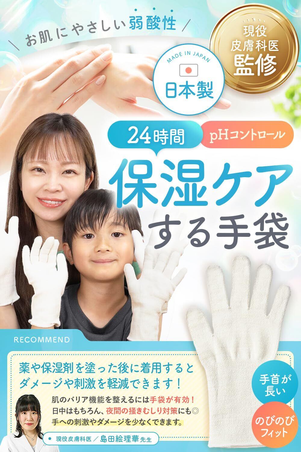 【ハンドケアに日本製x弱酸性ヴェール】 保湿手袋 おやすみ手袋 ナイト手袋 【皮膚科医の先生が監修しました!】 (おとなM, 1双組)