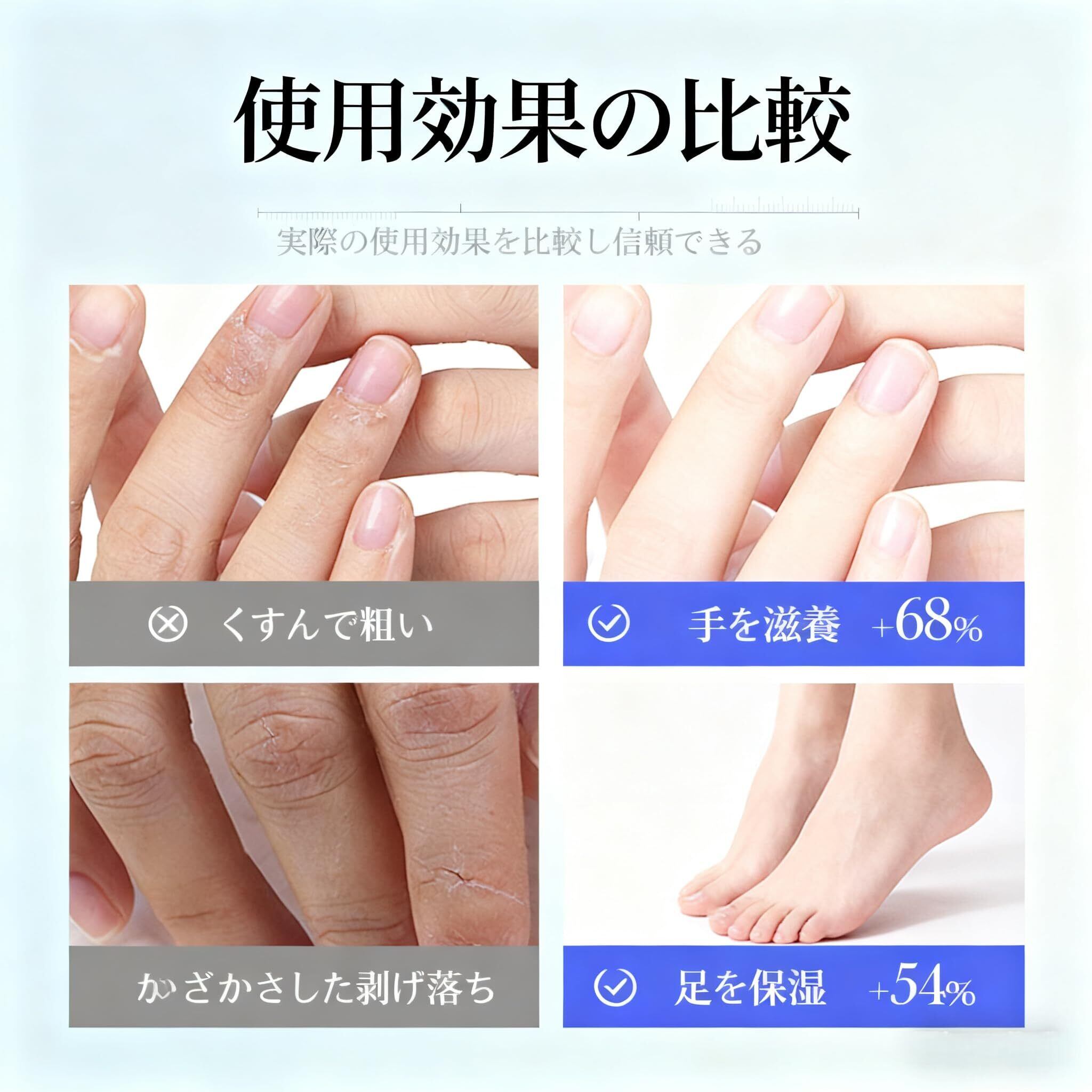 深層保湿:足の奥深くまで浸透し、乾燥したかかとに潤いを与え、足に柔らかさと快適さを取り戻します。