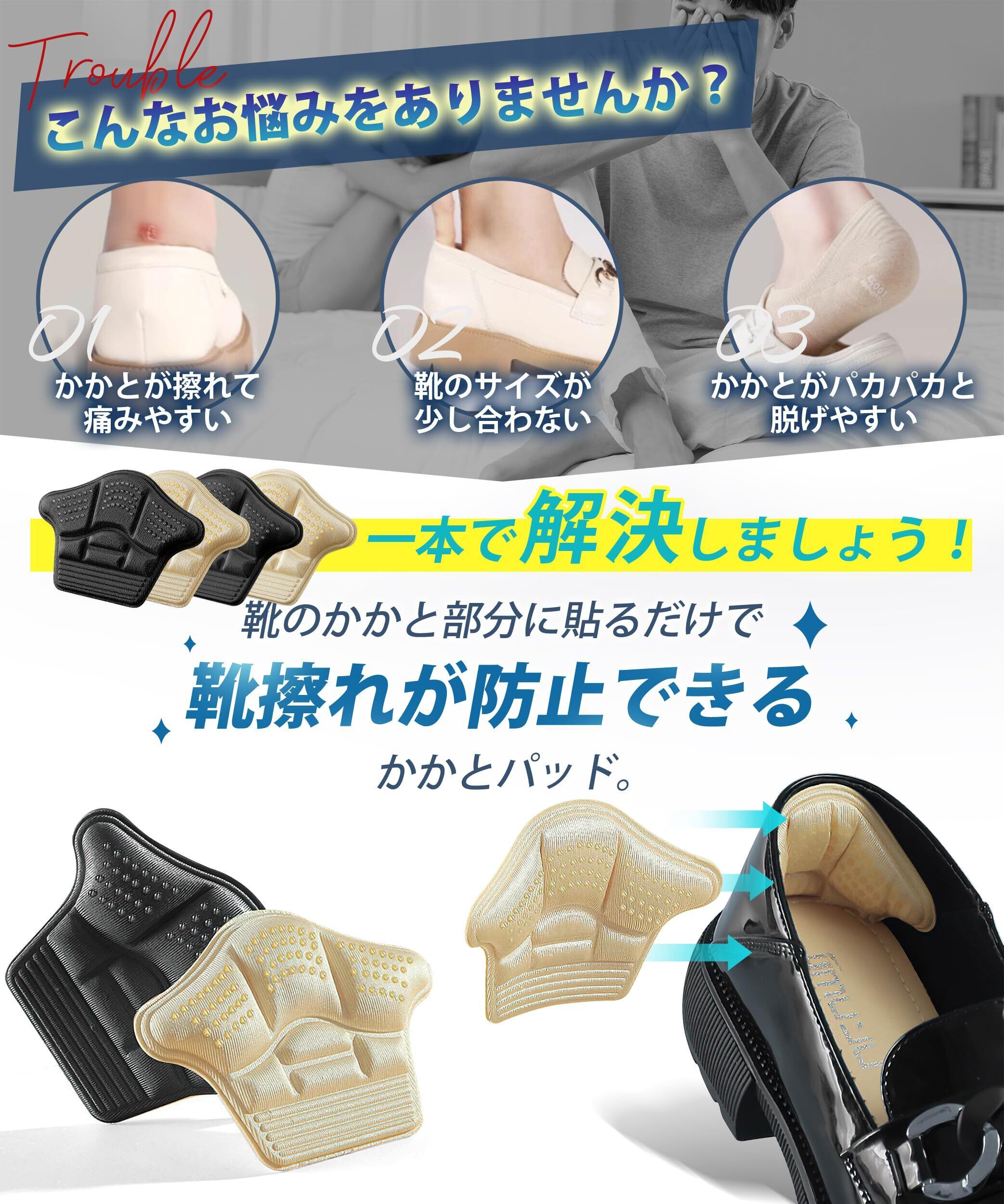 【使用しやすい】コンパクトなかかとパッド、バッグに入れて持ち運びに便利。お出掛け、散歩、旅行、通勤などの時にもかかとを保護します。軽くて快適な履き心地で、長時間貼っても剥がれにくく目立ちません。ブラック、ベージュ、シンプルなカラーでどんな靴に合わせやすい。