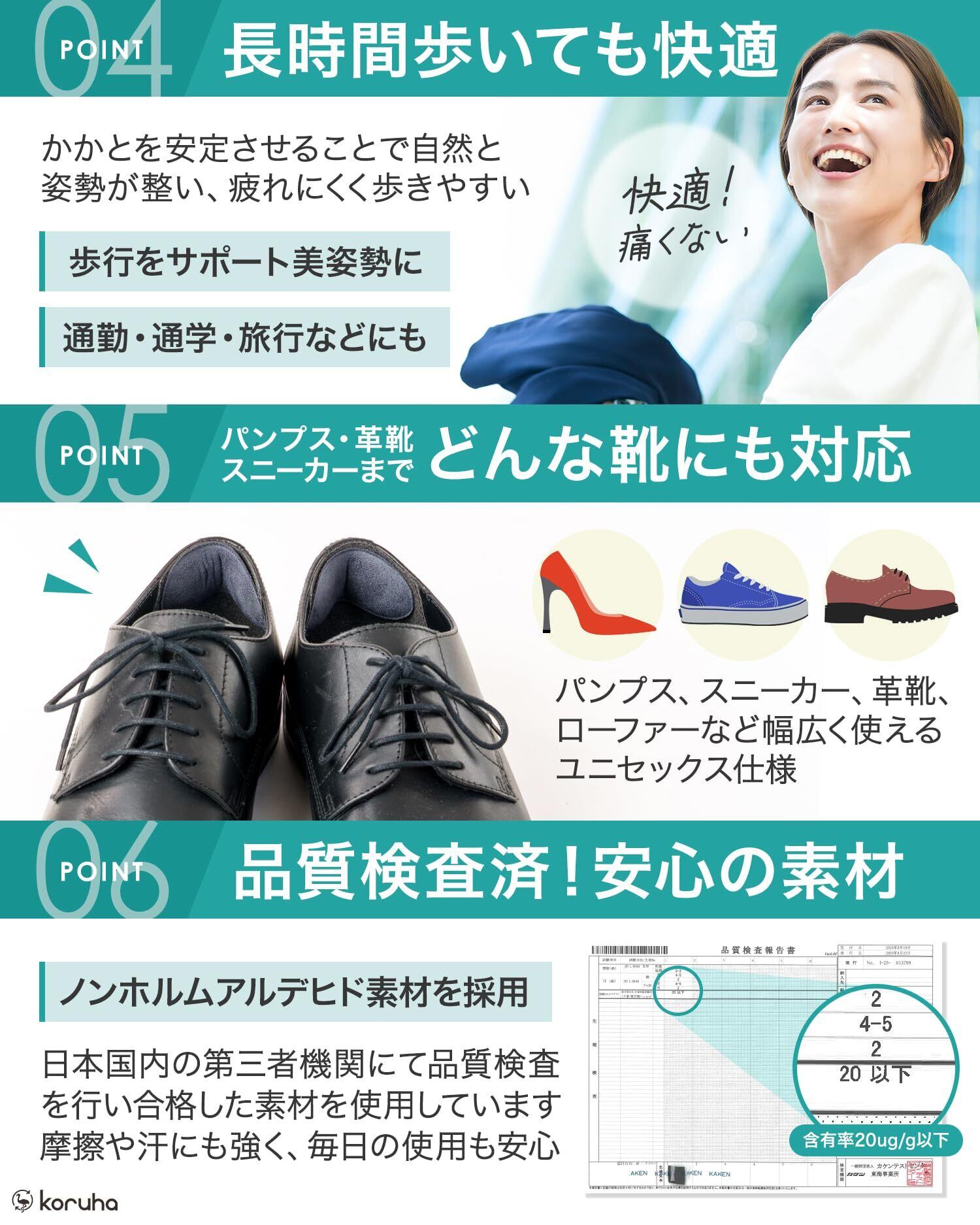 商品特長 ふんわりクッション、靴擦れ防止