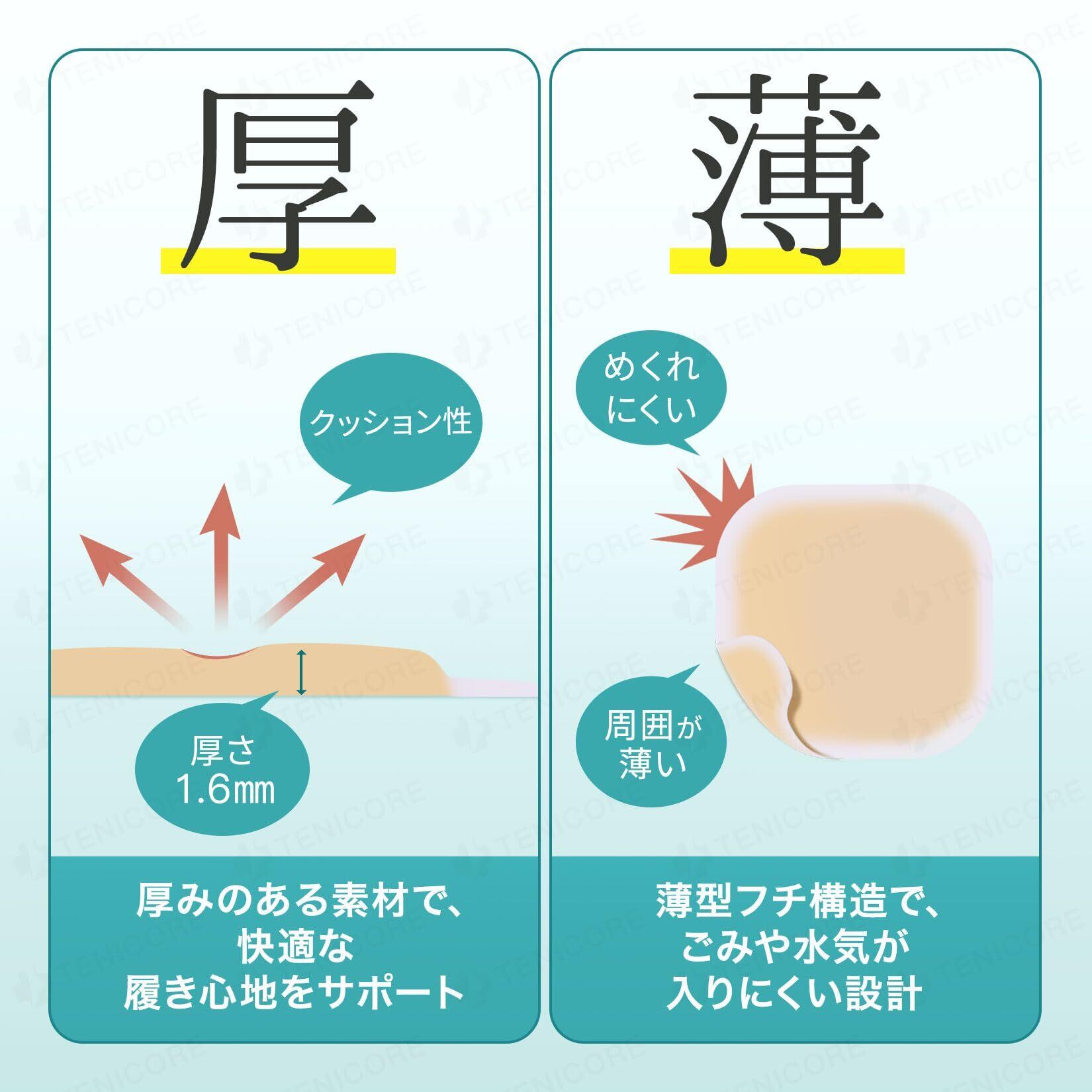 【2022最新】【10枚+ケース付き】Tenicore 足用保護パッド 母趾、小趾、足裏など保護用パッド 靴擦れテープ 靴擦れ防止パッド ハイドロコロイド素材 防水 クッション性・衝撃吸収のかかとサポーター 使い捨てタイプ TE302A