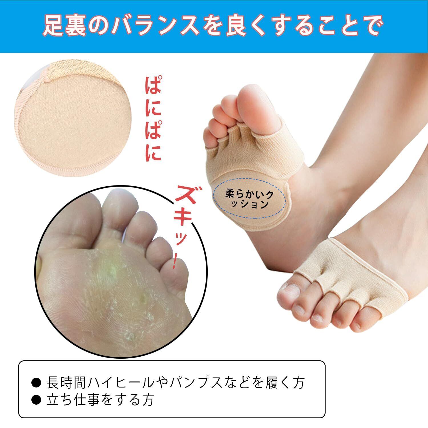 【5本指デザイン】足の5本指を広げて、外反母趾と内反小趾がサポートできます。足裏保護パッドは肌触りよく厚みもしっかりとありますので、衝撃を軽減致します。