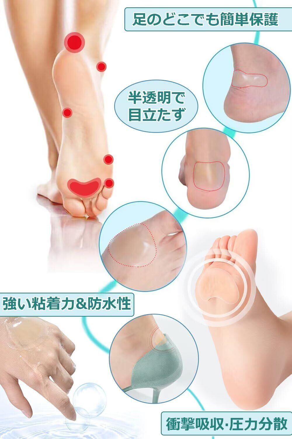 広範な貼り付け可能: つま先からかかと、足裏まで、足のあらゆる部位に貼り付け可能です。足のトラベルによる痛みを和らげ、靴との摩擦を軽減します。