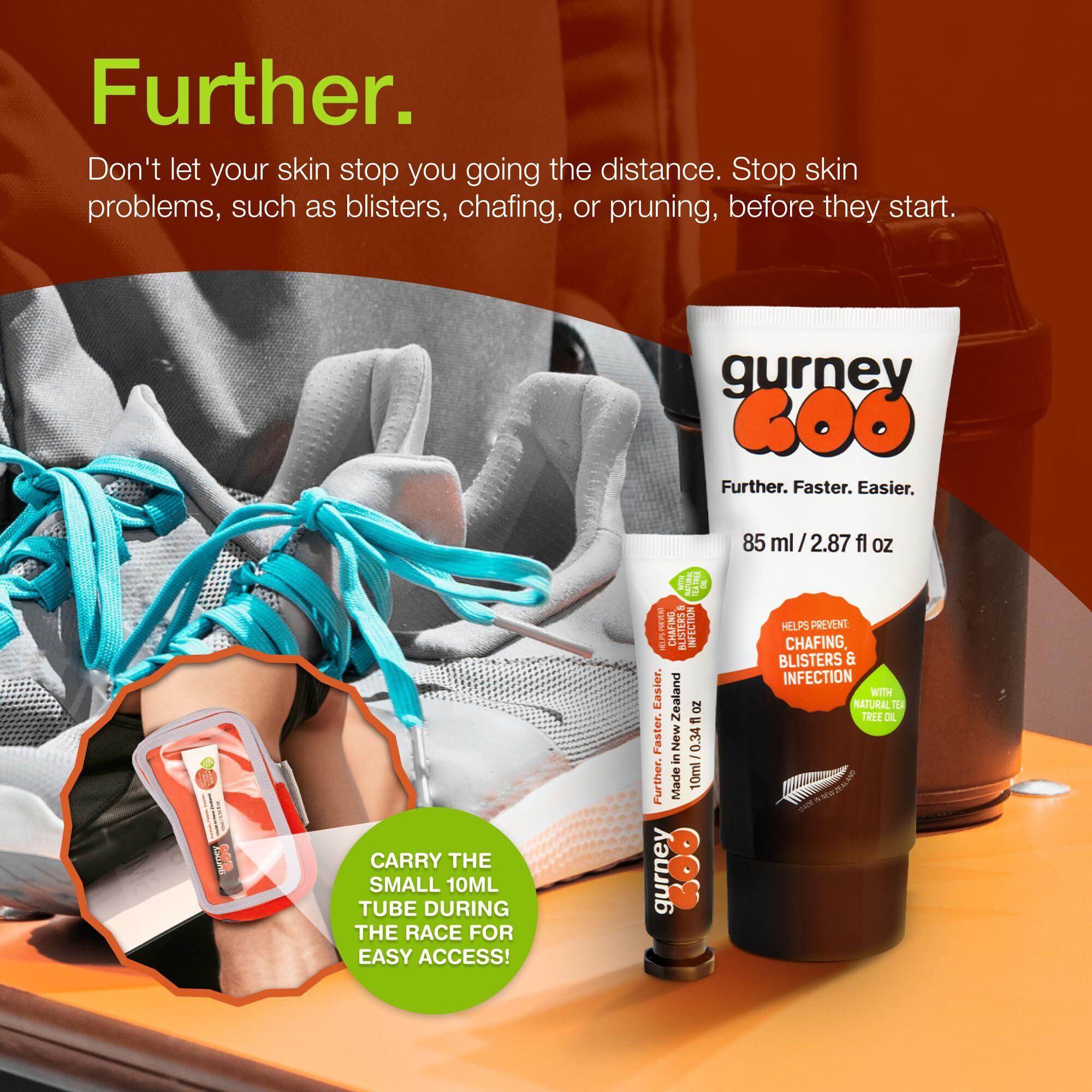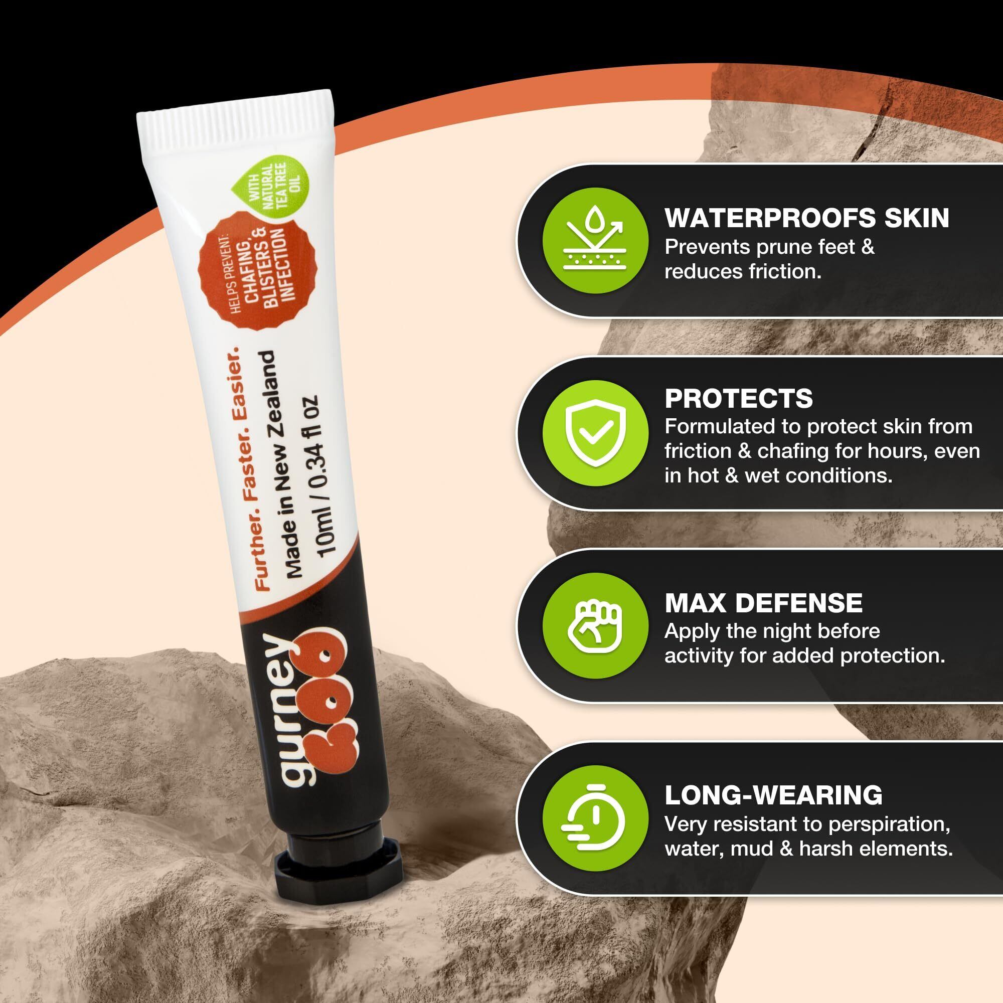 ・日常生活でのとっても痛い足のトラブルをこれ1つで解決できます。 ・これを塗るだけで足のマメ・水膨れのトラブルから解放されます。ワセリンより断然効果が高いクリームです。 ・衣類や靴で擦れて痛くなる可能性の部分にあらかじめ塗るだけでそれらを予防します。 ・新しい靴に変えた時、長時間歩いた時、トレイルランニングやマラソン、さらには女性のハイヒールでの擦れなどとっても痛い足のトラブルの悩みを一発解決します。 ・足はもちろん、手のひら、脇の下、股、お尻、乳首など身体全体のトラブル防止にもとても効果があります。 ・ニュージーランド最大のアドベンチャーレース「コーストトゥーコースト」9回優勝のスティーブ・ガーニー氏開発のスキントラブルを防いでくれるクリームです。 ・長時間ハードに走り続けなければならないアドベンチャーレーサー、トレイルランナー、バイカーに愛用されています。 ・長距離・長時間のレースで常に足を最良のコンディションに保つだけでなく、摩擦も減らしてマメや水ぶくれなどの擦れから来るトラブルを防いでくれます