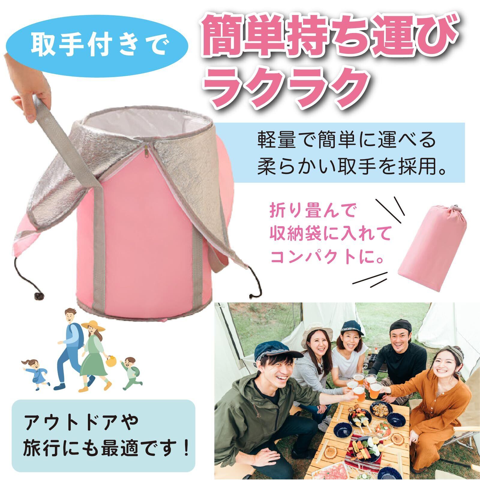 【蓋付き収納袋付き】軽量で簡単に運べる柔らかい取手を採用。折り畳んで収納袋に入れてコンパクト収納。持ち運んでアウトドアや旅行にも最適です!