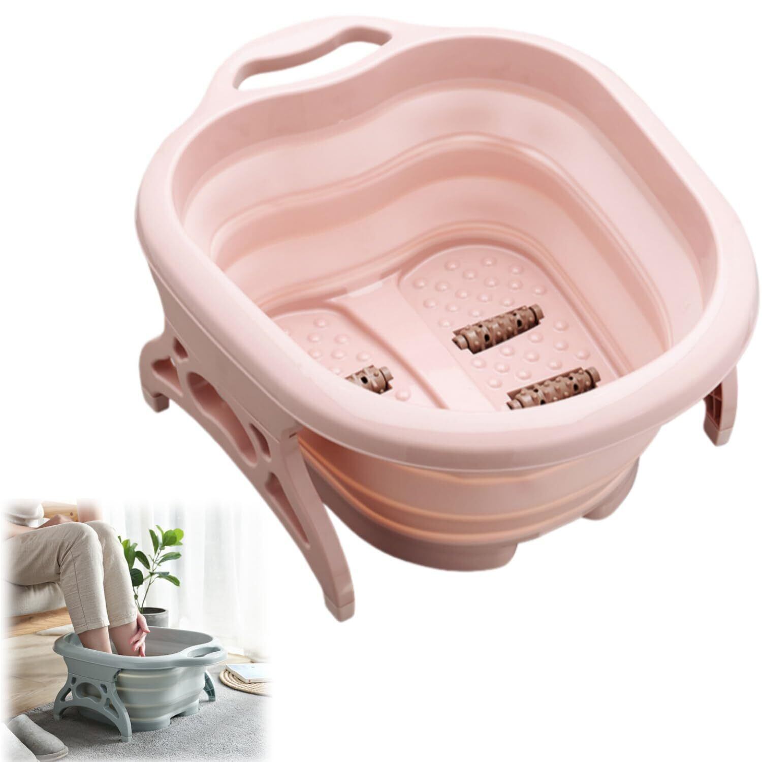 【マッサージ粒+ローラーデザインで、足湯と同時にマッサージを楽しむ】バケツの底にマッサージ粒とローラーが内蔵され、足湯中に足底のツボを刺激し、血行を促進します;ぬるま湯で足を浸けることで、足の冷えを効果的に緩和し、を軽減し、毎回の足湯を「家庭用フットサロン SPA」に変えます。
