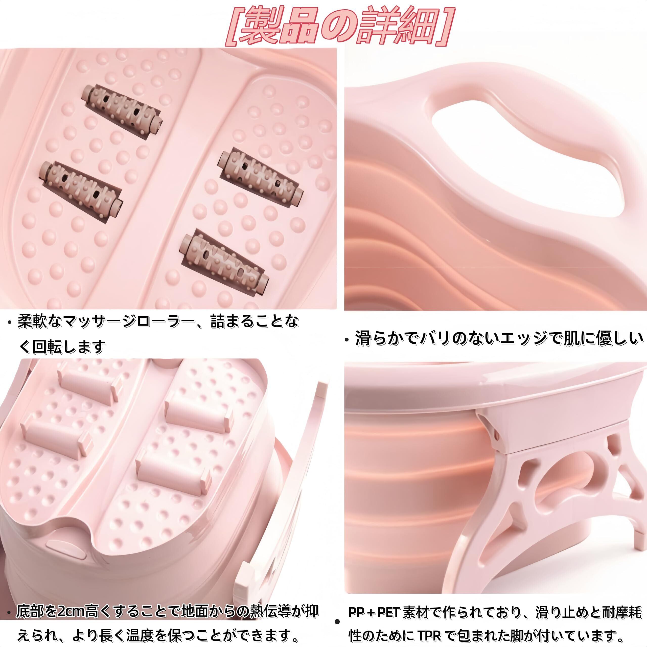 足湯バケツ 足湯器 足湯たんぽ 折りたたみ可 大容量 折りたたみ 蓋付き フットバス 泡脚桶 足湯 持ち運び便利 折りたたみバケツ 足の冷え対策 軽減 (ピンク)