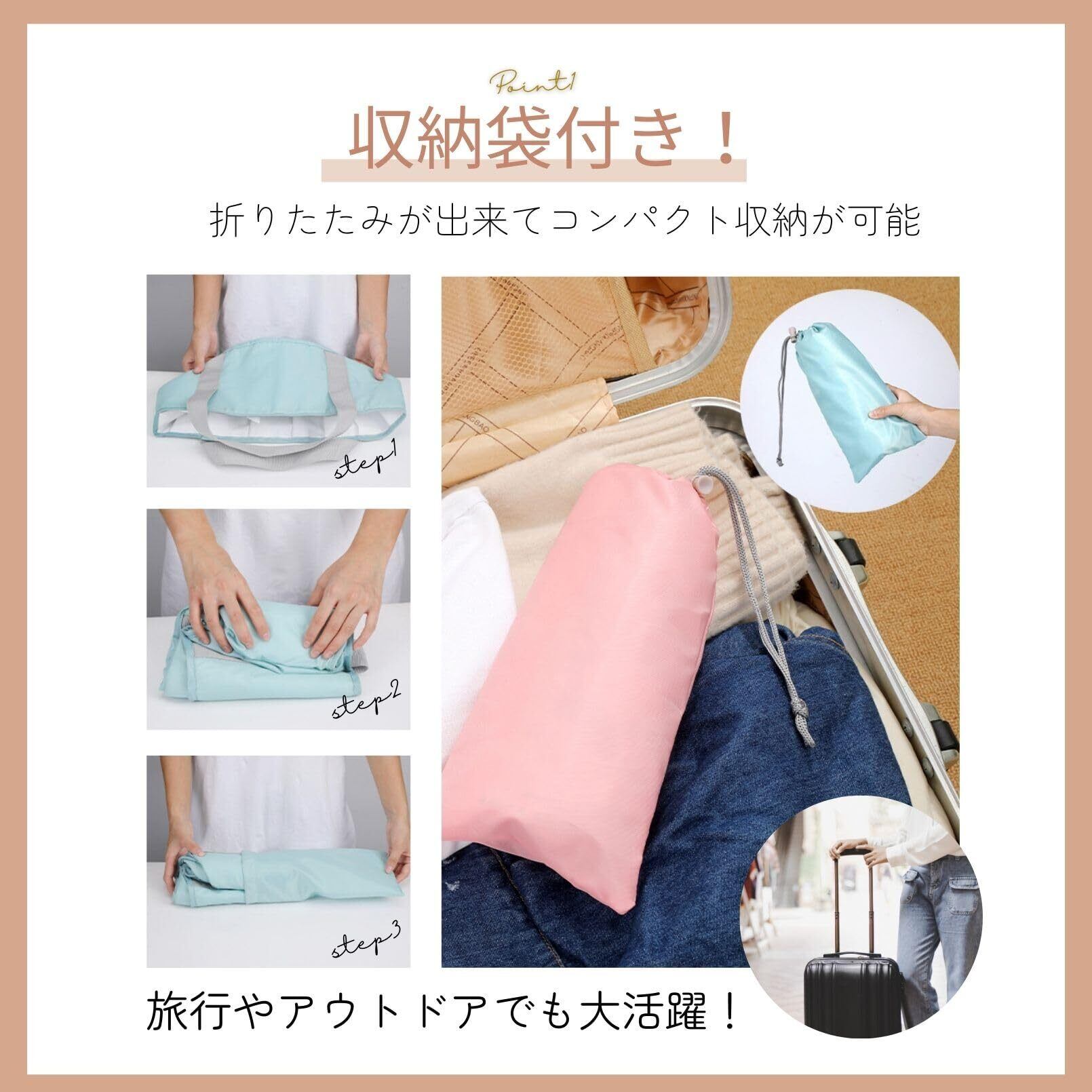 【収納袋付き】コンパクトに折り畳んで専用の収納袋に入れれば置き場所にも困りません!お家での利用だけでなく旅行先の持って行ったり、洗車やキャンプ・ガーデニングなどにもマルチにお使い下さい。