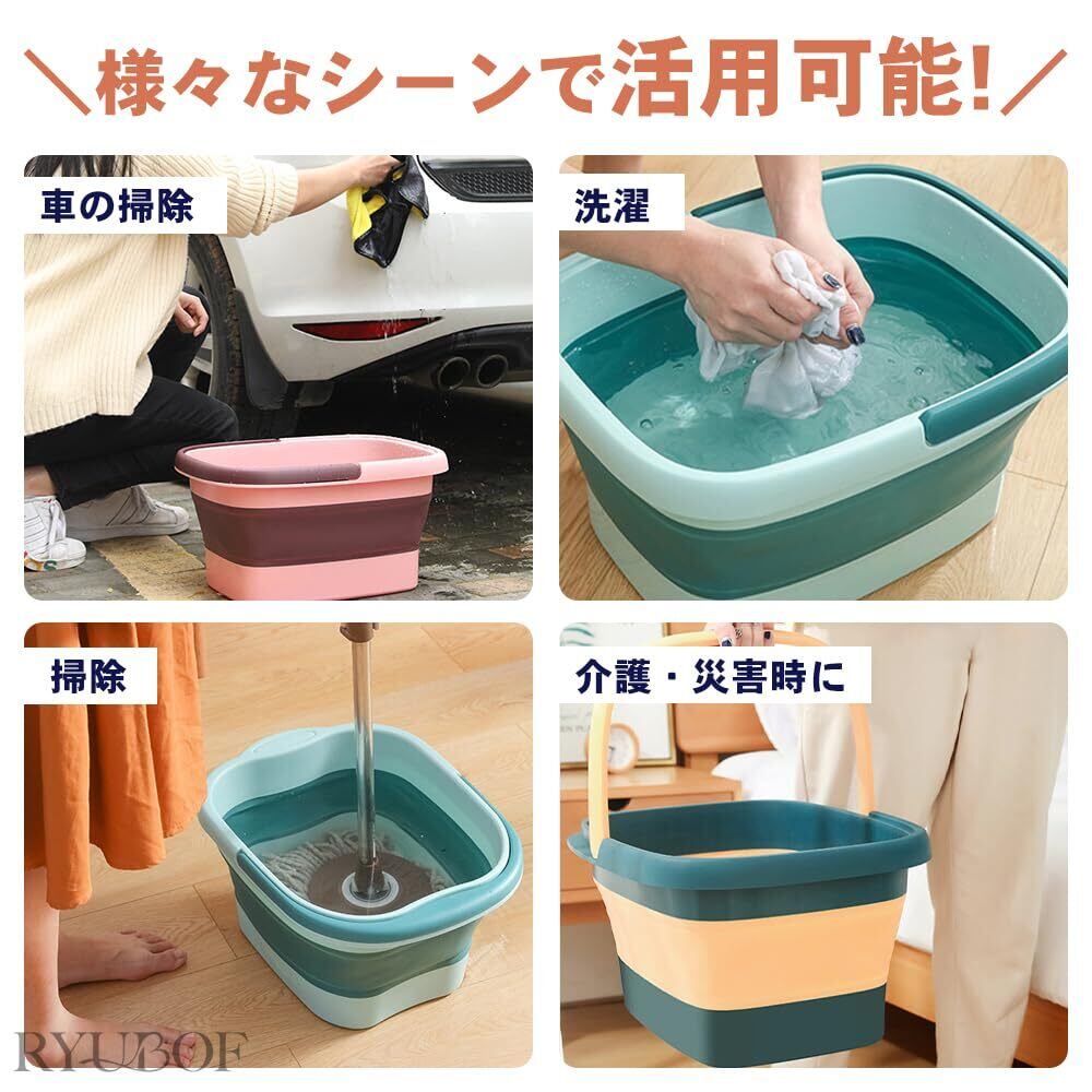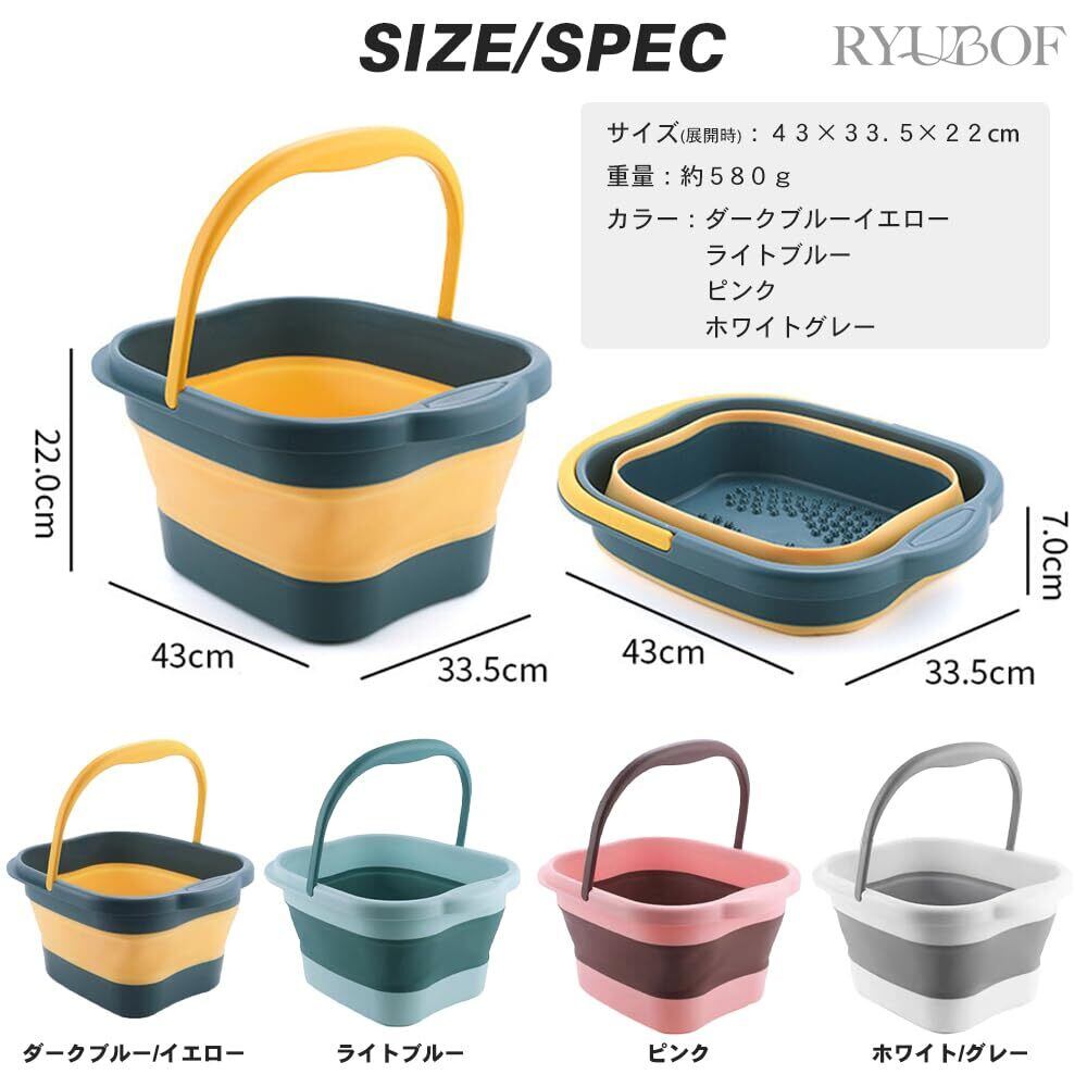 【特価セール】RYUBOF足湯 折り畳みバケツ フットバス 保温 バケツ 折りたたみ 深め 軽量 アウトドア 13リットル (ライトブルー×ダークブルー)