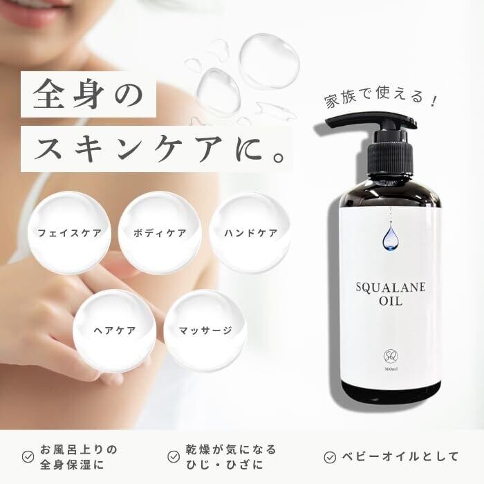 スクワランオイル 300ml 天然 サメ 保湿 ボディ フェイス ハンドケア ヘアケア ベビーオイルにも使える アルコールフリー 国産 無香料 無着色