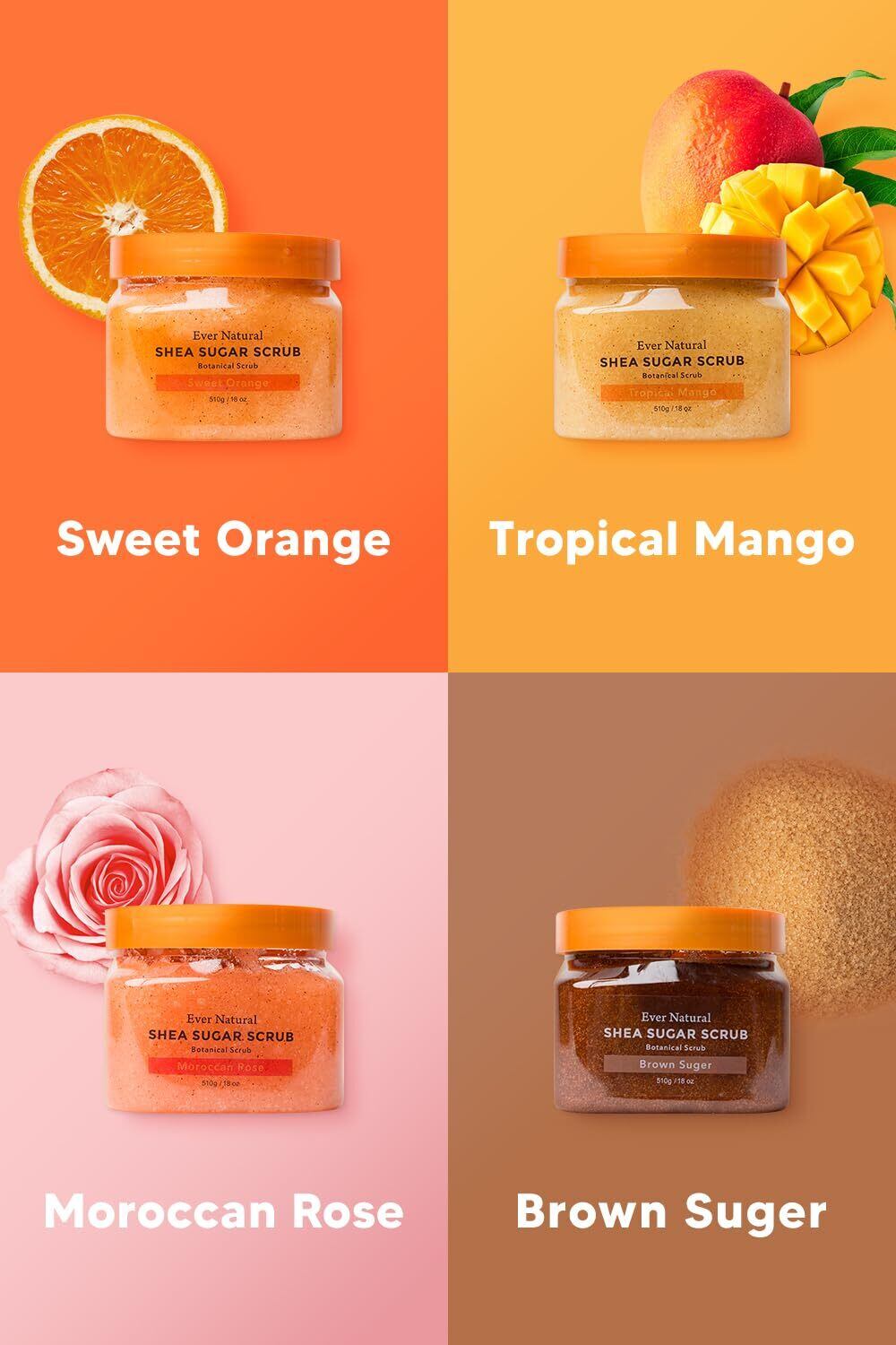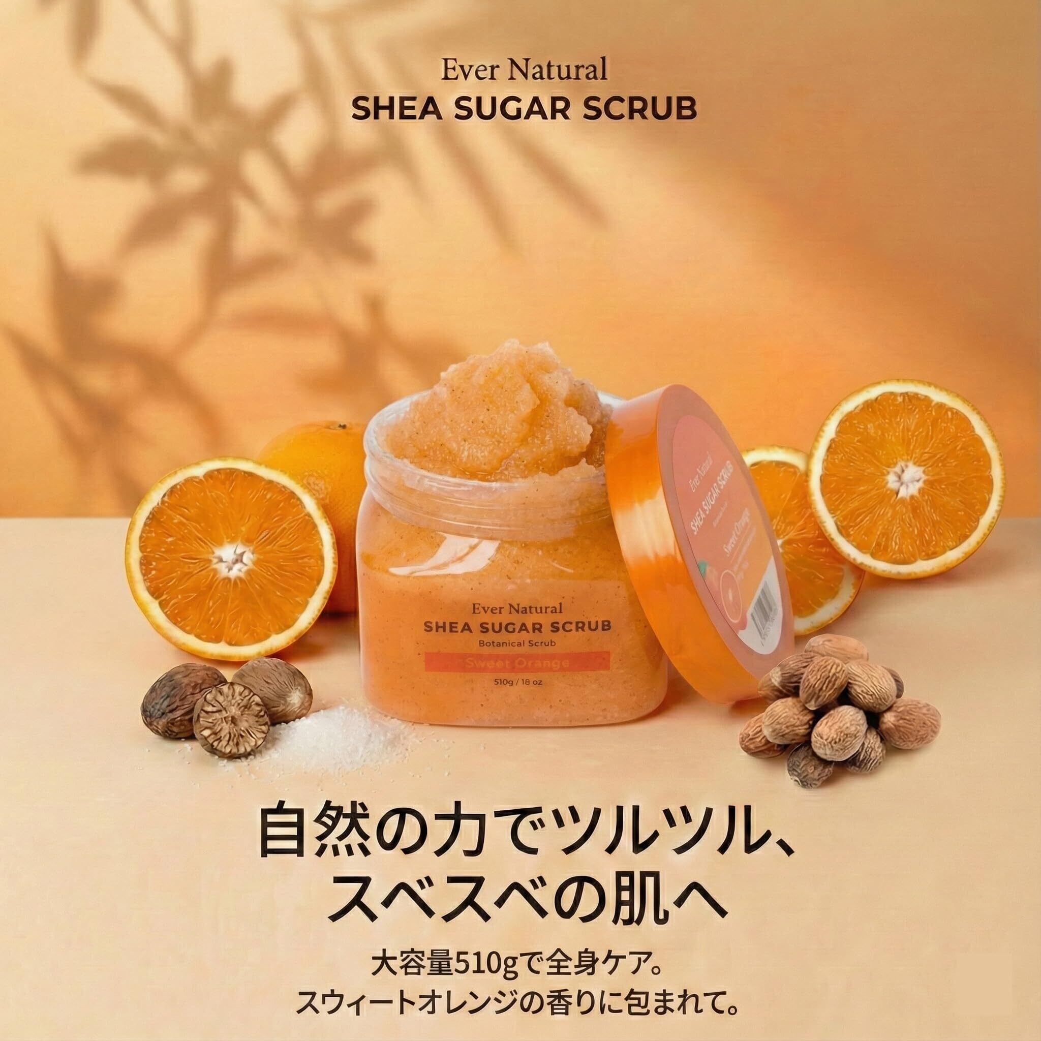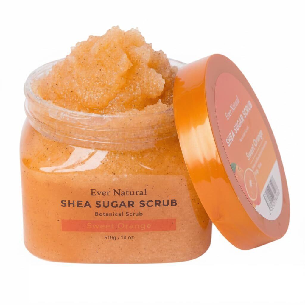 エバーナチュラル ボディスクラブ 510g 大容量 【しっかり粒感で角質オフ】 シアバター & シュガー 配合 角質ケア かかと 膝 肘 天然由来成分 保湿 (スウィートオレンジ)