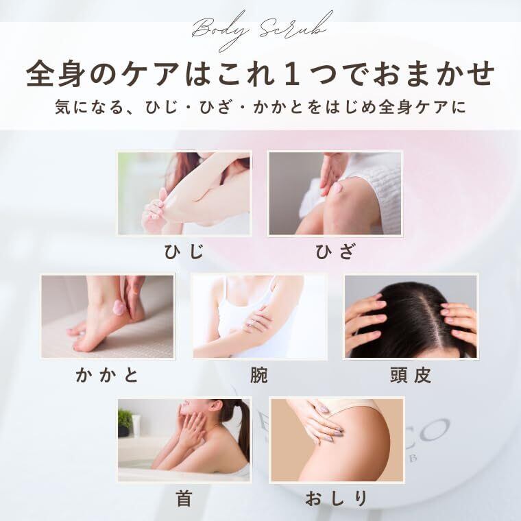 【天然塩ボディスクラブ】ベールアンドコーのボディスクラブはミネラルたっぷりの天然塩を配合。髪・頭皮・ボディ・肘・膝の全身ケアにお使いいただけます。