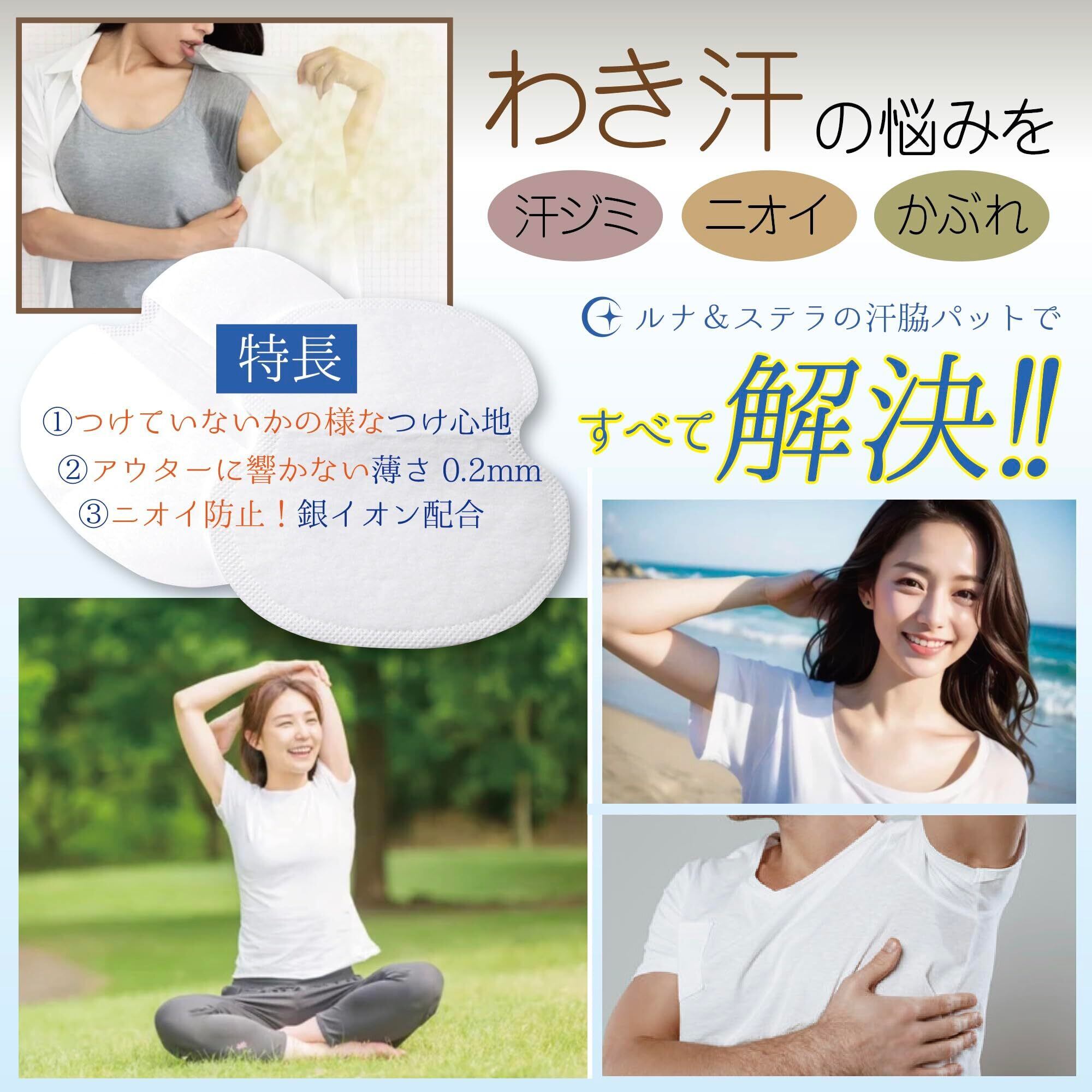 Luna & Stella 汗脇パッド 60枚 脇汗パッド メンズ レディース 強粘着 15ml吸収 汗取りパッド 黒
