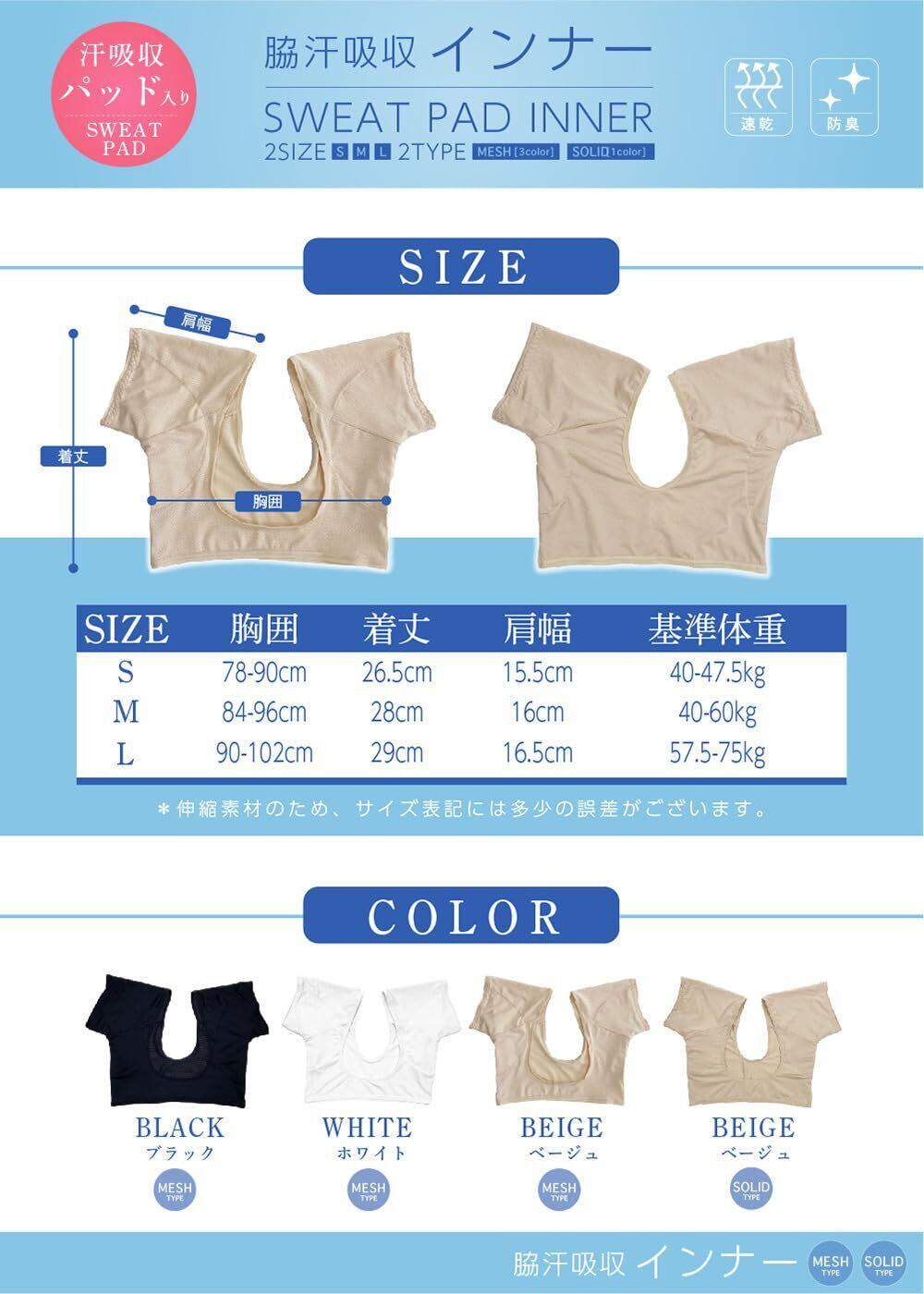 [PETIT MARRY'S] 脇汗パッド 脇汗インナー 汗取りインナー レディース 脇汗対策 汗染み 脇パッド 速乾 防臭 メッシュ 脇汗吸収 大汗 半袖 夏 1枚入り