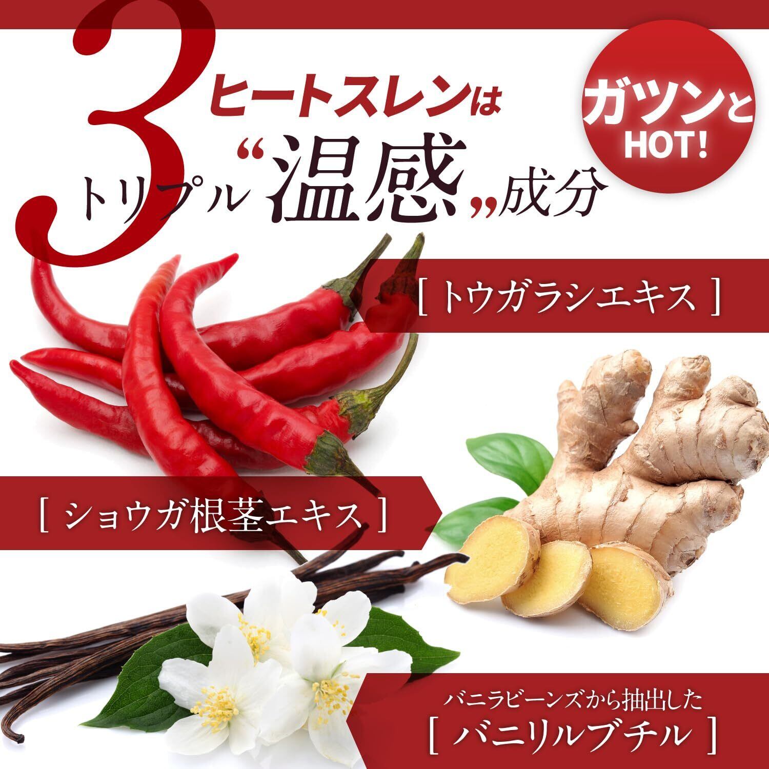 特別な原料 バニリルブチル、ショウガ根茎エキス、トウガラシエキス、ヒアルロン酸