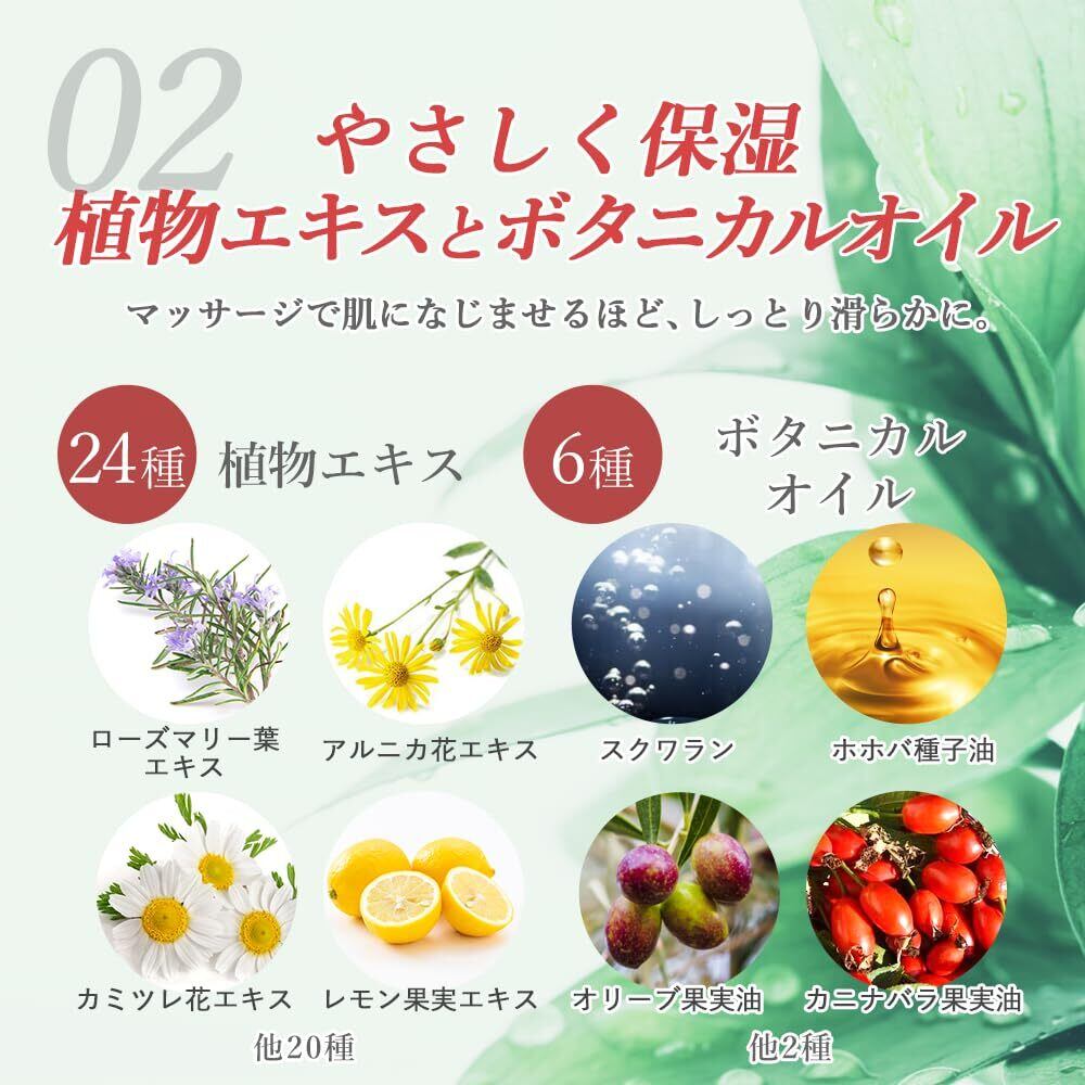 【24種の植物エキス&6種のボタニカルオイル配合】厳選した天然由来成分が、マッサージ中の肌をやさしくケア。うるおいを与えながら、しっとりとしたハリのある肌に導きます。乾燥しがちなボディケア後の肌も、みずみずしく保ちます。