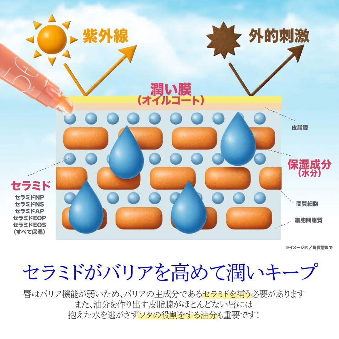 【紫外線ダメージをブロック】紫外線ダメージを防ぎながら、唇を美しく見せるUVカットリップセラム。 シミやそばかすの原因となる紫外線B波(UVB)と、肌の奥深く(真皮)まで到達する紫外線A波(UVA)をしっかりブロック。 紫外線や乾燥によって硬くなりやすい唇にうるおいを与え、すこやかに整えます。