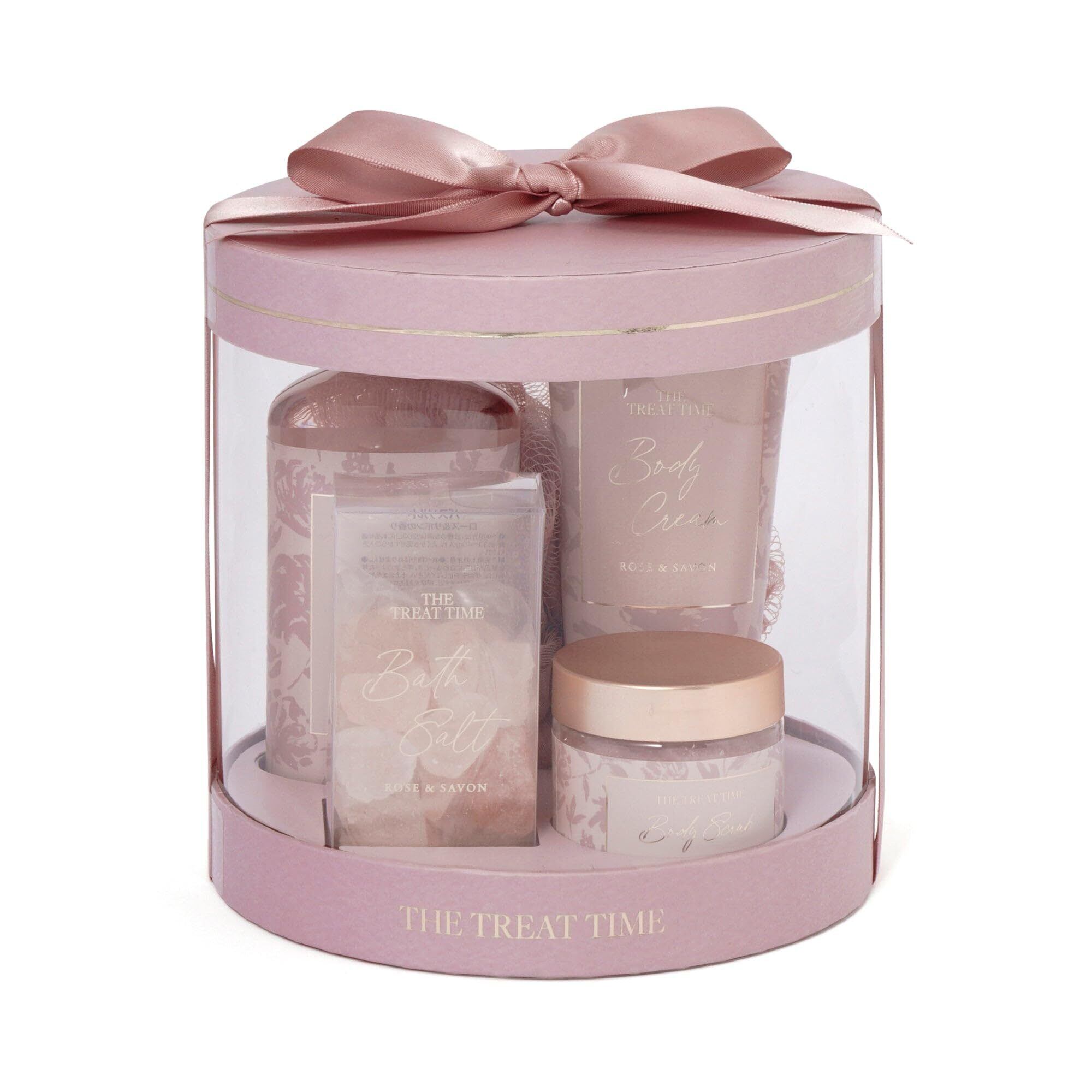 いつもがんばっている方の疲れを癒していただくためのギフトセットです。 大人スイートなトレンドを取り入れたバスタイムセットは感謝の気持ちを伝えたい方への贈り物にぴったりです。 アイテム:ハンド&ボディクリーム、ボディウォッシュ、ボディスクラブ、バスソルト、バススポンジ