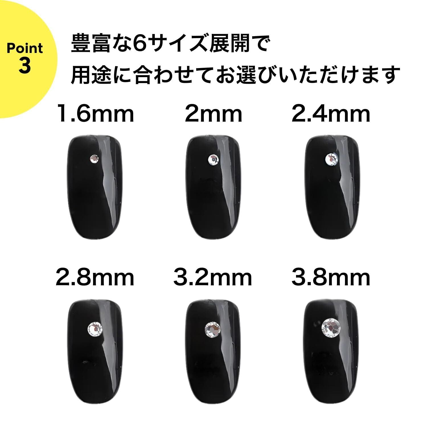 【選べる豊富なサイズと大容量】直径1.6mm(SS4相当)から3.8mm(SS16相当)までの豊富なサイズ展開です。1サイズあたり1440粒入りの大容量となっており、たっぷりとお使いいただけます。