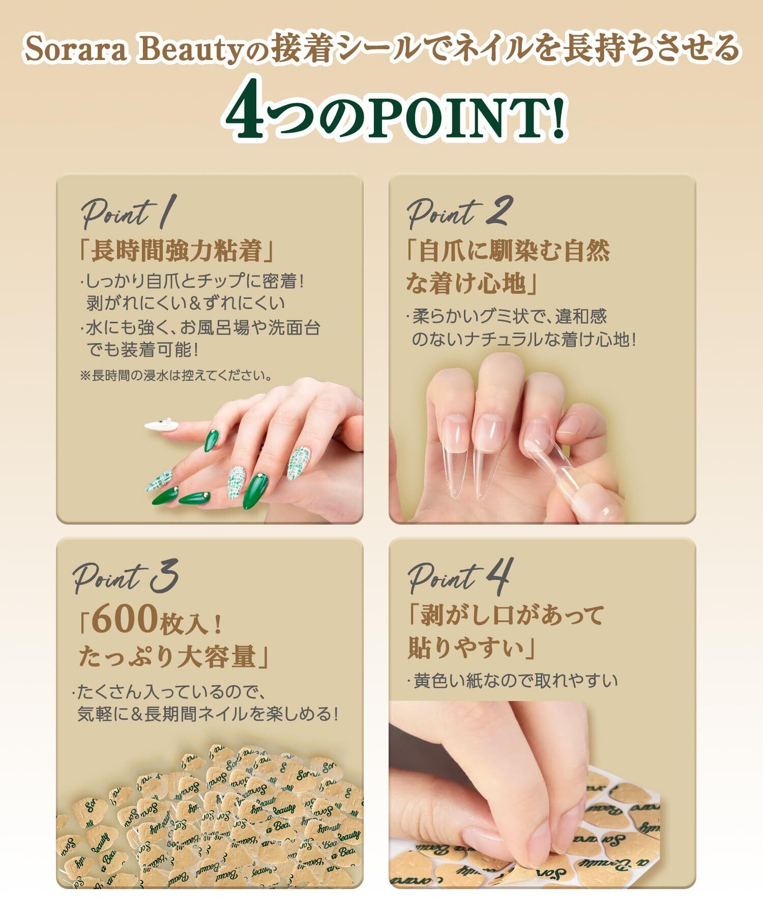 SoraraBeauty 超強力 ネイルチップ専用接着シール ネイル接着剤 付け爪 つけ爪 両面テープ ネイル つけづめ 爪用 接着剤 テープ グルー 0.2mm 極薄 透明 防水 粘着 600枚入