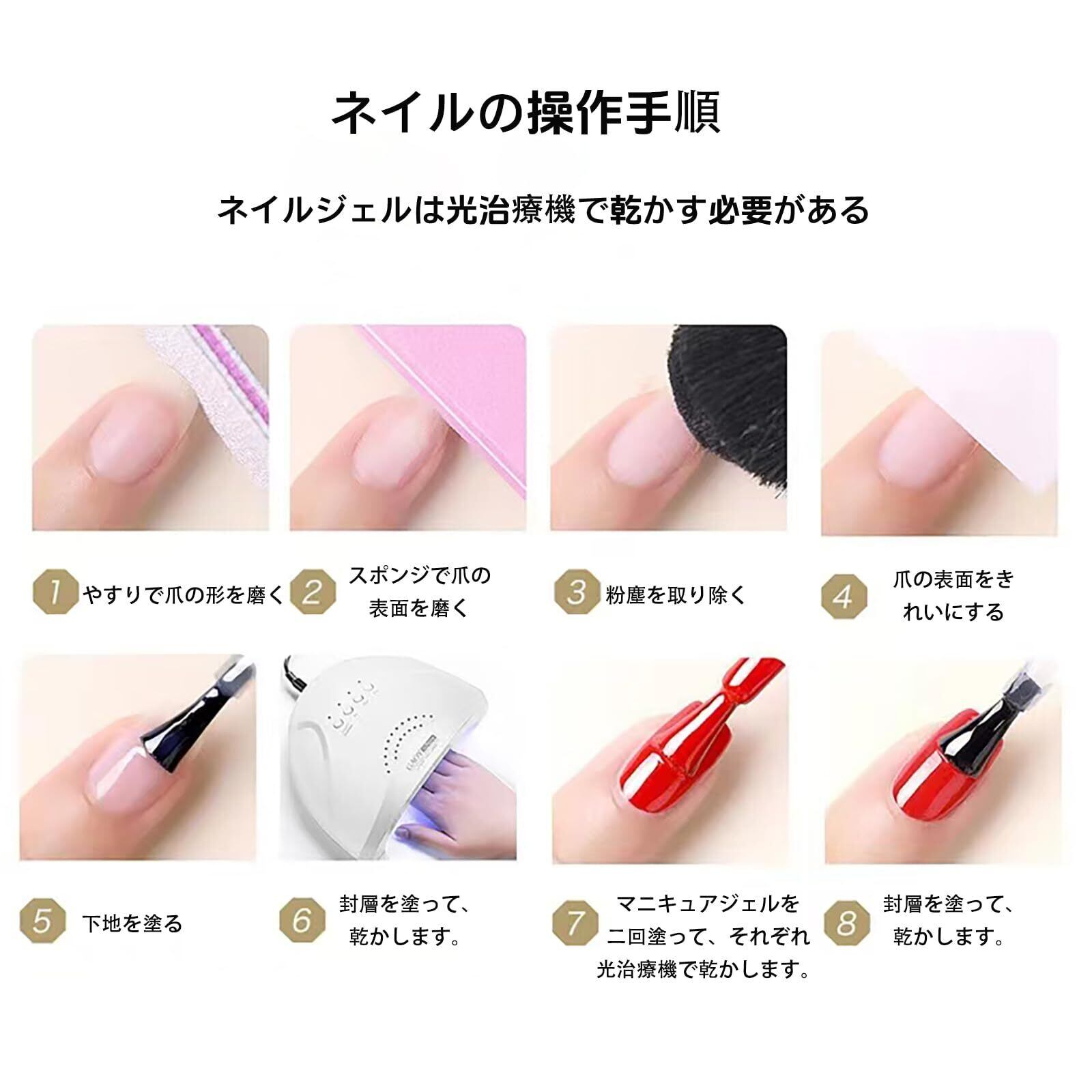 [大容量] 1本15ミリリットルの大容量は何度も使用できます。このジェルマニキュアはネイル硬化ランプを使って乾燥させる必要があります。市販の各種ネイル硬化ランプに対応します。