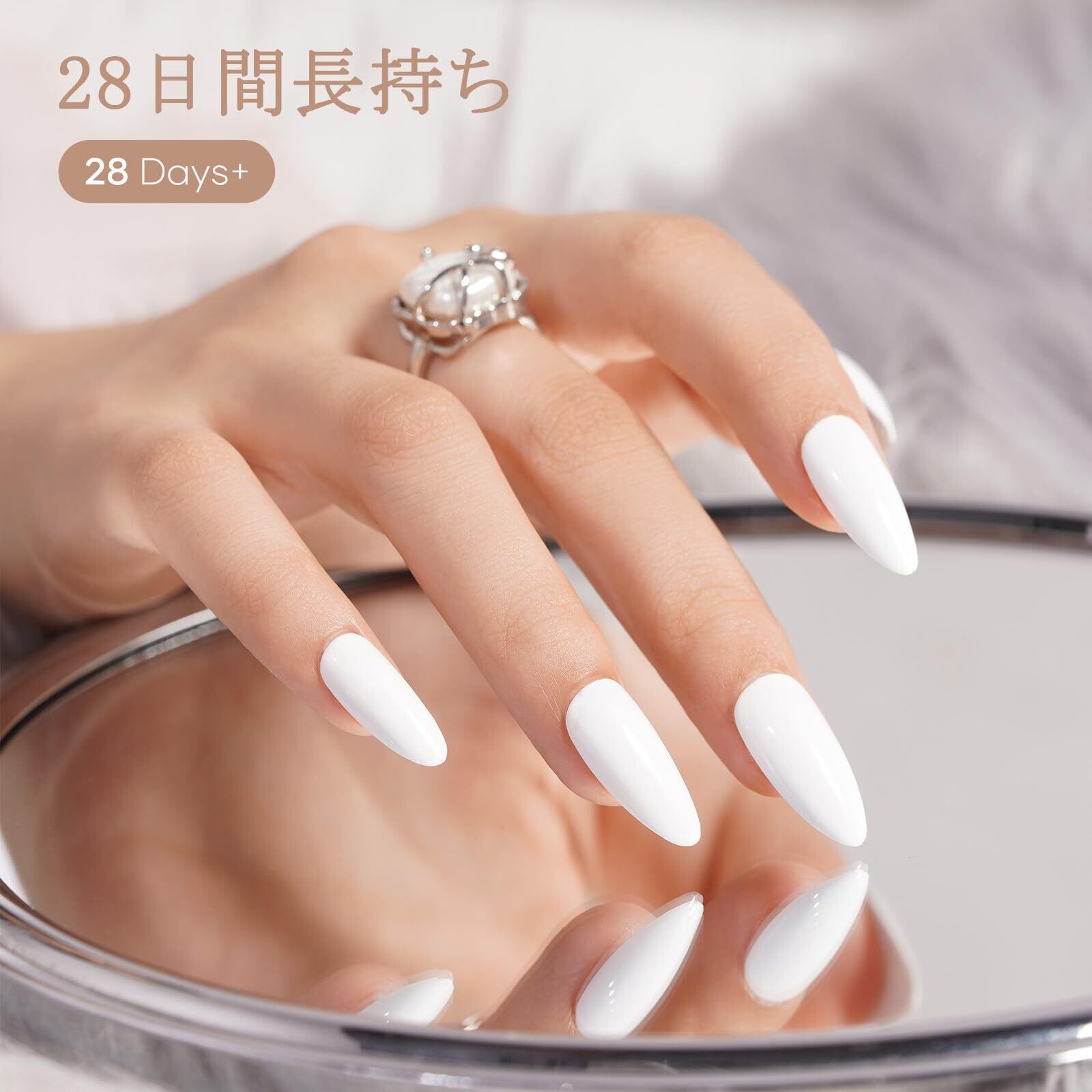 【塗りやすい】このジェルネイルポリッシュは滑らかなアプリケーションと高発色のフォーミュラを特徴としており、簡単にどんなネイルアートスタイルにも対応できます。ファッショナブルなホワイトカラーで、自然な見た目ながら、色褪せず、比類のない光沢を実現します。