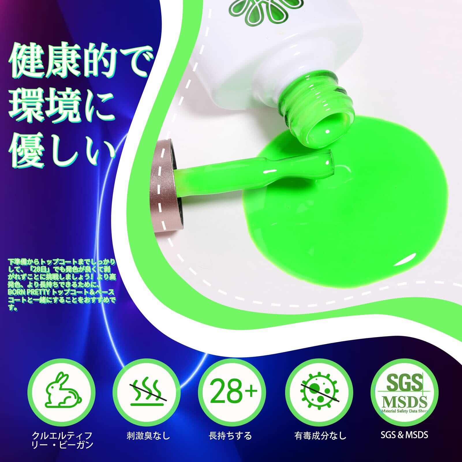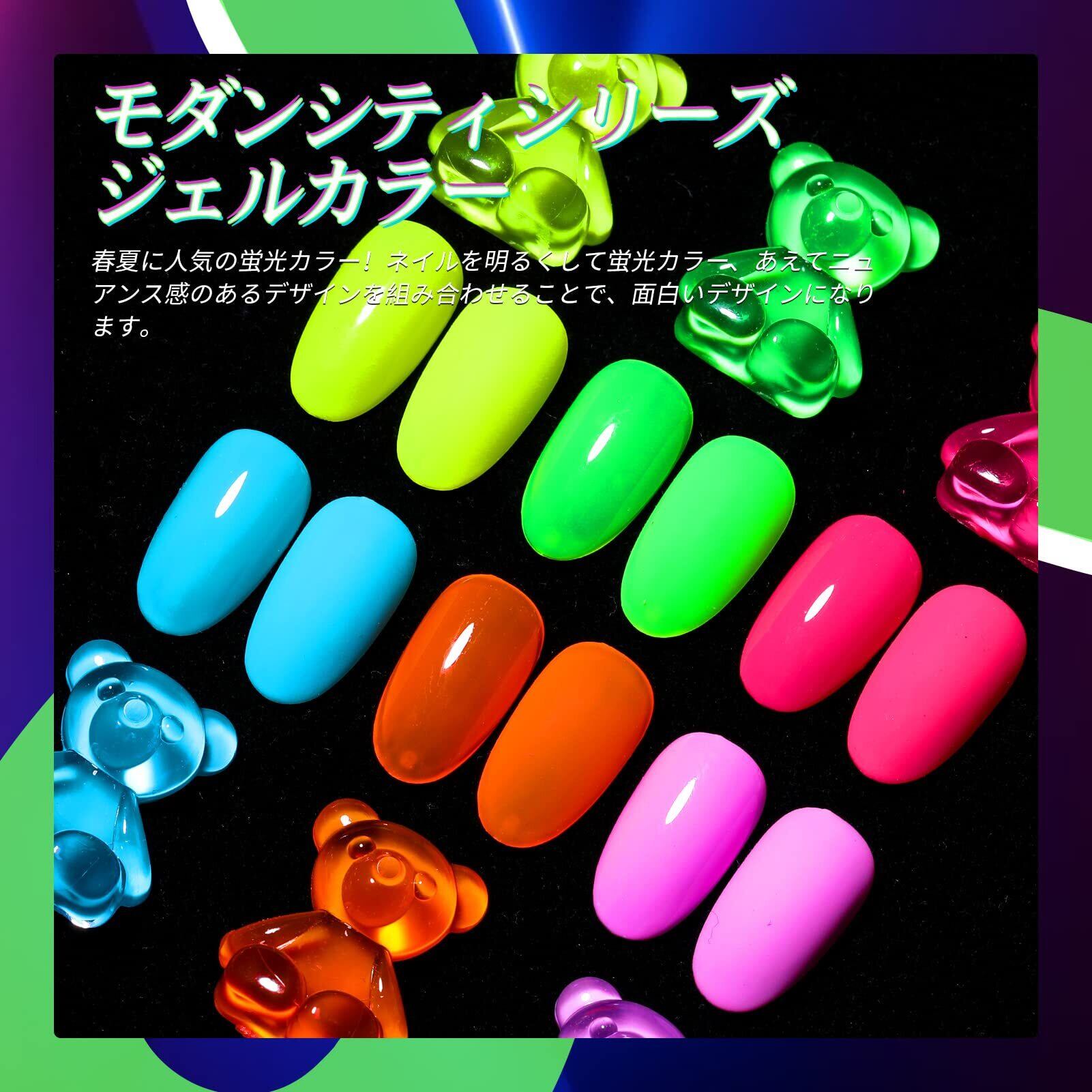 【数量限定】BORN PRETTY ジェルネイルカラーセット 蛍光カラー ネオンカラー カラージェル ネイル 春夏ネイル イエロー グリーン レッド 6色 UV/LED対応 ポリッシュタイプ セルフネイルバレンタインネイル ハロウィン