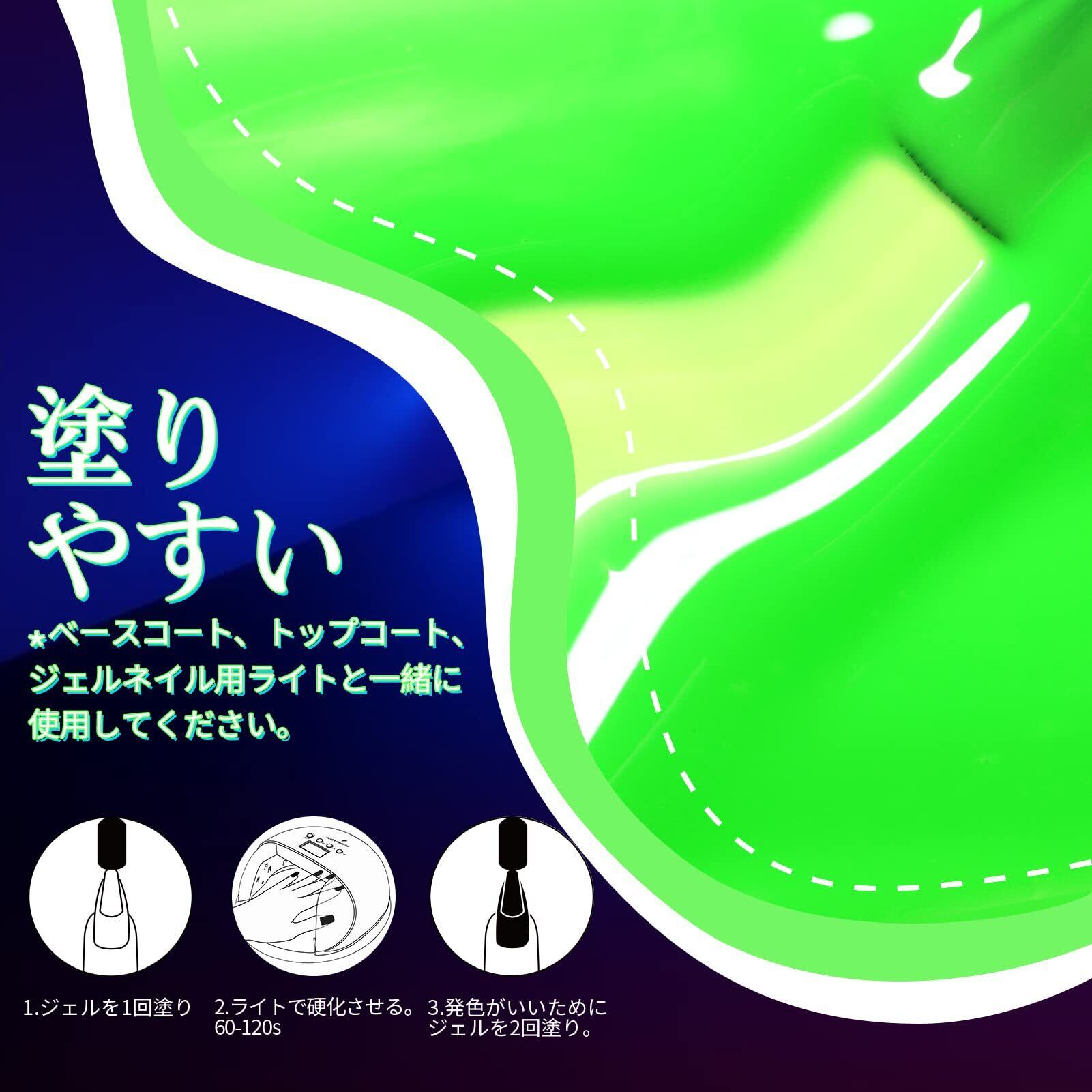 【硬化時間】:36WのLEDライトで約60S。当社で測定した実測値です。状況によって多少の差があります。