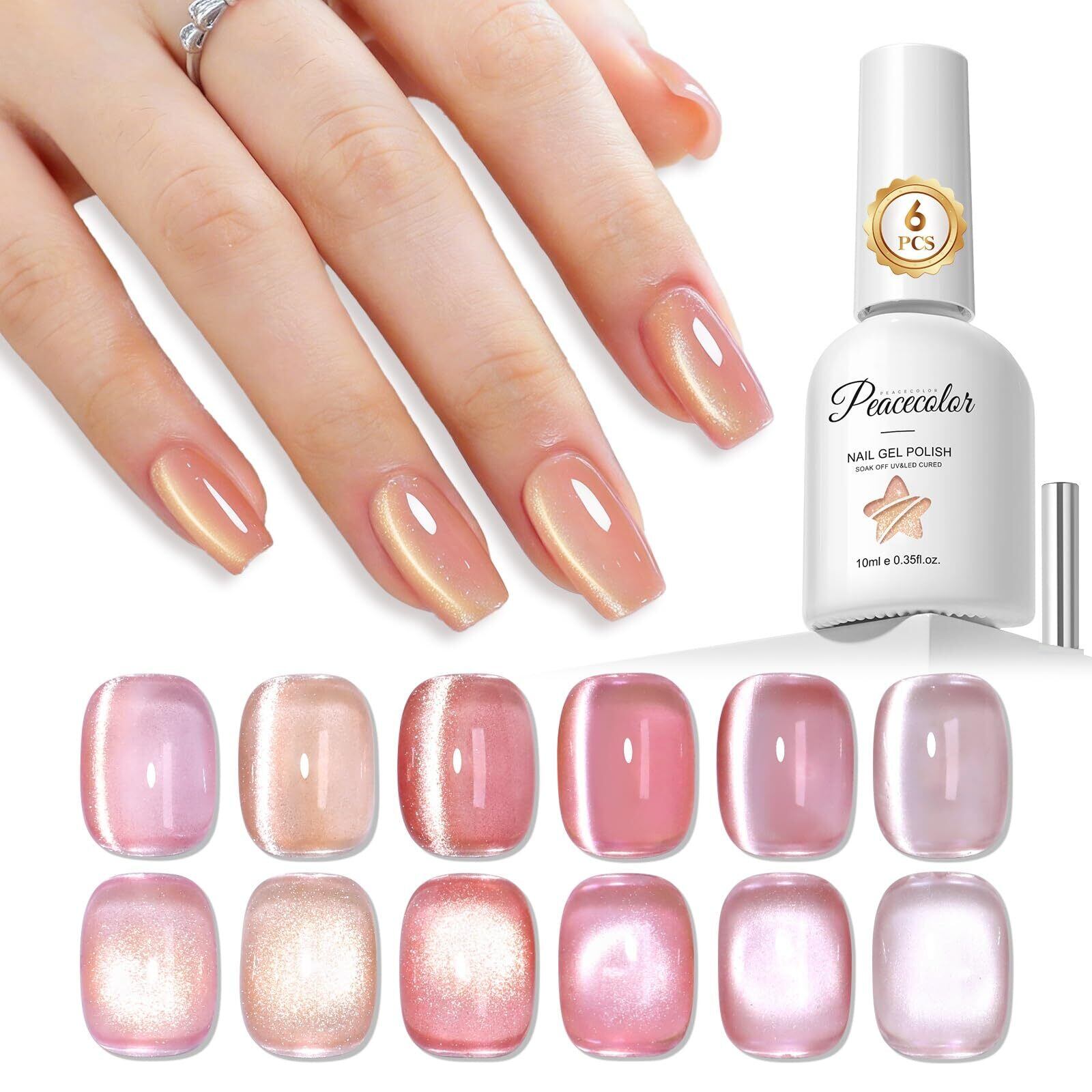 PEACECOLOR マグネットネイル ジェルネイルセット 桜吹雪ピンク ヌード 超微粒子 超透け感 マグネットジェル カラージェルセット 猫目ジェル 長持ち 自宅ネイルサロン 6本*10ML大容量 初心者 プロ プレゼント