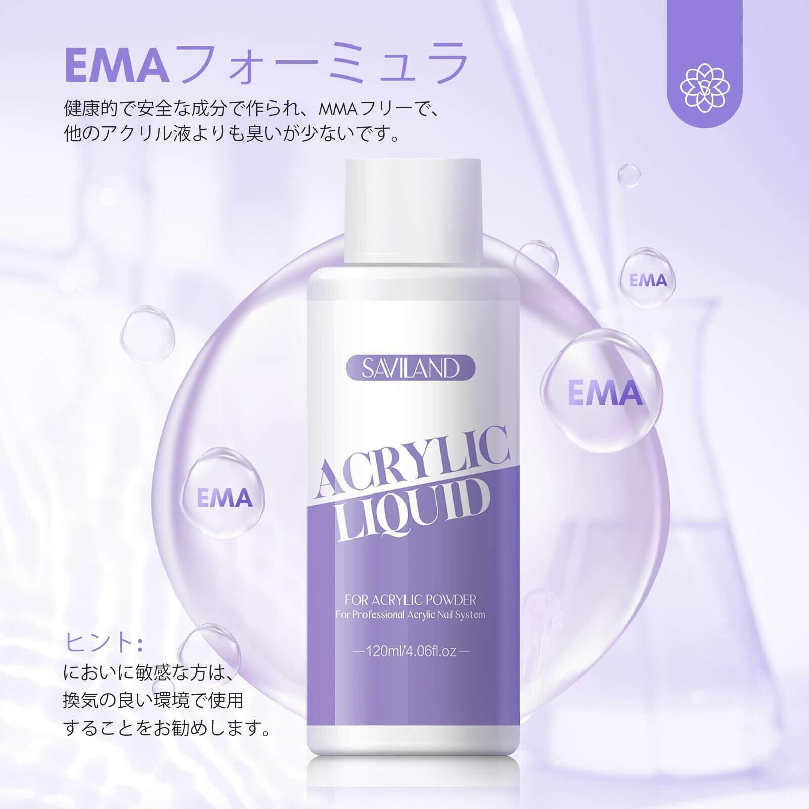Saviland アクリルリキッド – 120 ML アクリル パウダー用ネイル リキッド アクリル ブラシ 12# - アクリルネイル用の非黄変フォーミュラ アプリケーション ネイル エクステンション & カービング ホーム DIY ネイル サロンでの使用