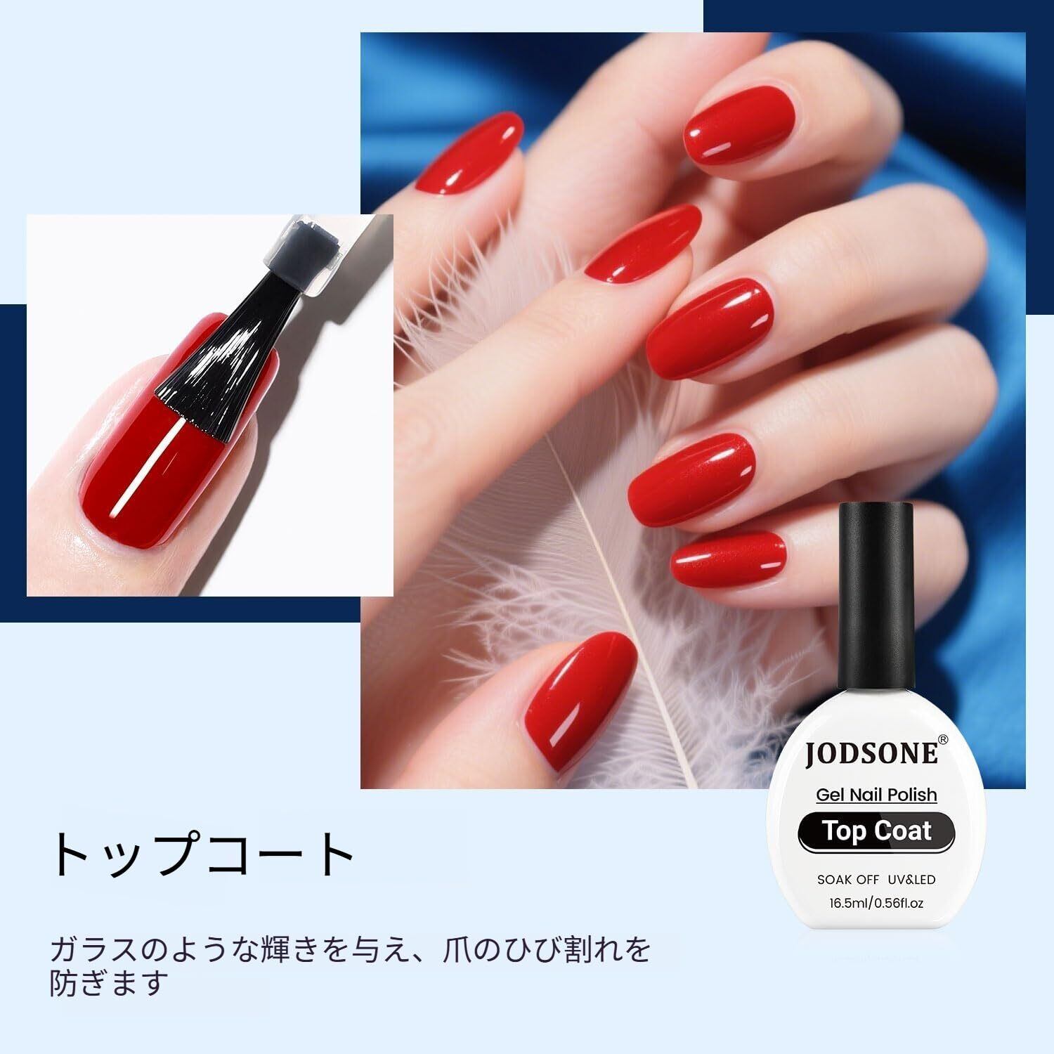 JODSONE ジェルネイル トップコート 16.5ml ノンワイプ 拭き取り不要 UV/LED対応 最上級の艶 長持ち サロンDIY ネイルアートデザイン用 初心者&プロ用