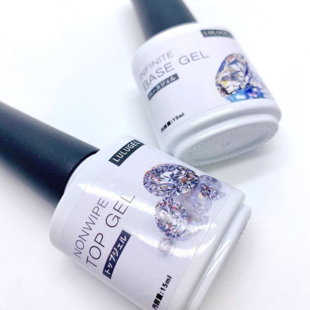 【LULUGEL インフィニット ベースジェル ノンワイプ トップジェル】内容量:15ml 硬化時間:【LED】約30~120秒 【UV】約120~180秒 ※塗量や色によって硬化時間が異なる場合がございます。